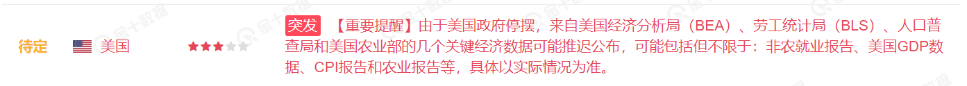 美国会未能就预算案获得通过,政府部门正式“停摆”,这直接导致今日即将要公布的9月非农数据被迫延期,至于什么时候能公布?不得而知。 失去非农数据指引,接下来的美联储利率调整是否会由此改变?接下来的市场该怎么走? 本周虽然处在国庆假期,国际市场照常运行并且势头强劲,黄金连连创新高,距离