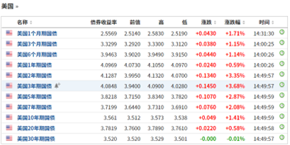 美国的债务分为公共债务和政府间债务。其中公共债务就是大家常见的各类短期、中期、长期债券,如下图。也是被讨论的最多的债券价格。