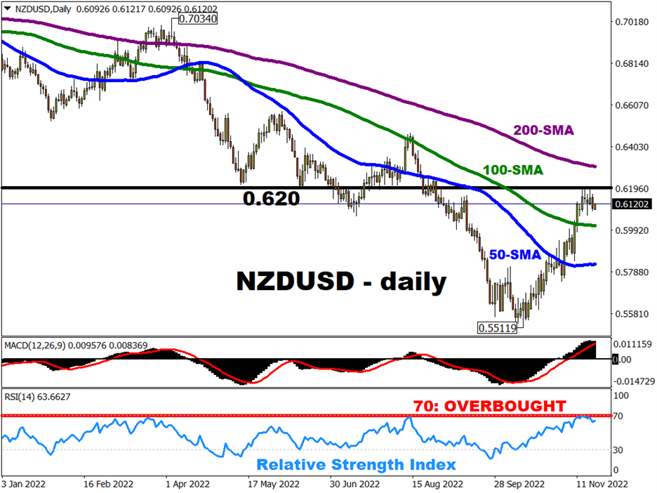 最近几周,由于市场预期美联储接近放慢加息步伐,美元高位回落,这也助推了纽元涨势。