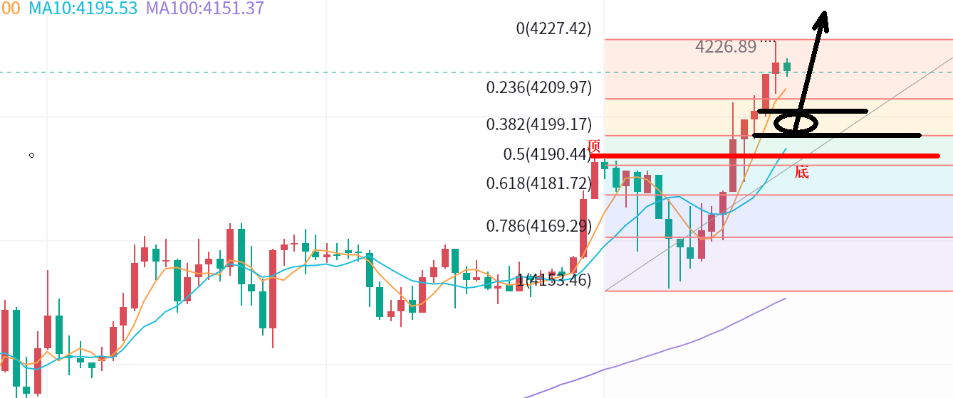 早安,屏幕前的你,我们总是把短板聚焦到自己身上,但或许恰恰忽略长处。做好每一点,其他的就看天意。 黄金方面,昨日冲高回落,其实从前一次日线上升来看,4200上方没有出现过什么停顿,也找不到好的阻力位。 但几个点依然是: 1,早间循环上升。 2,早间破高,午后继续是多。