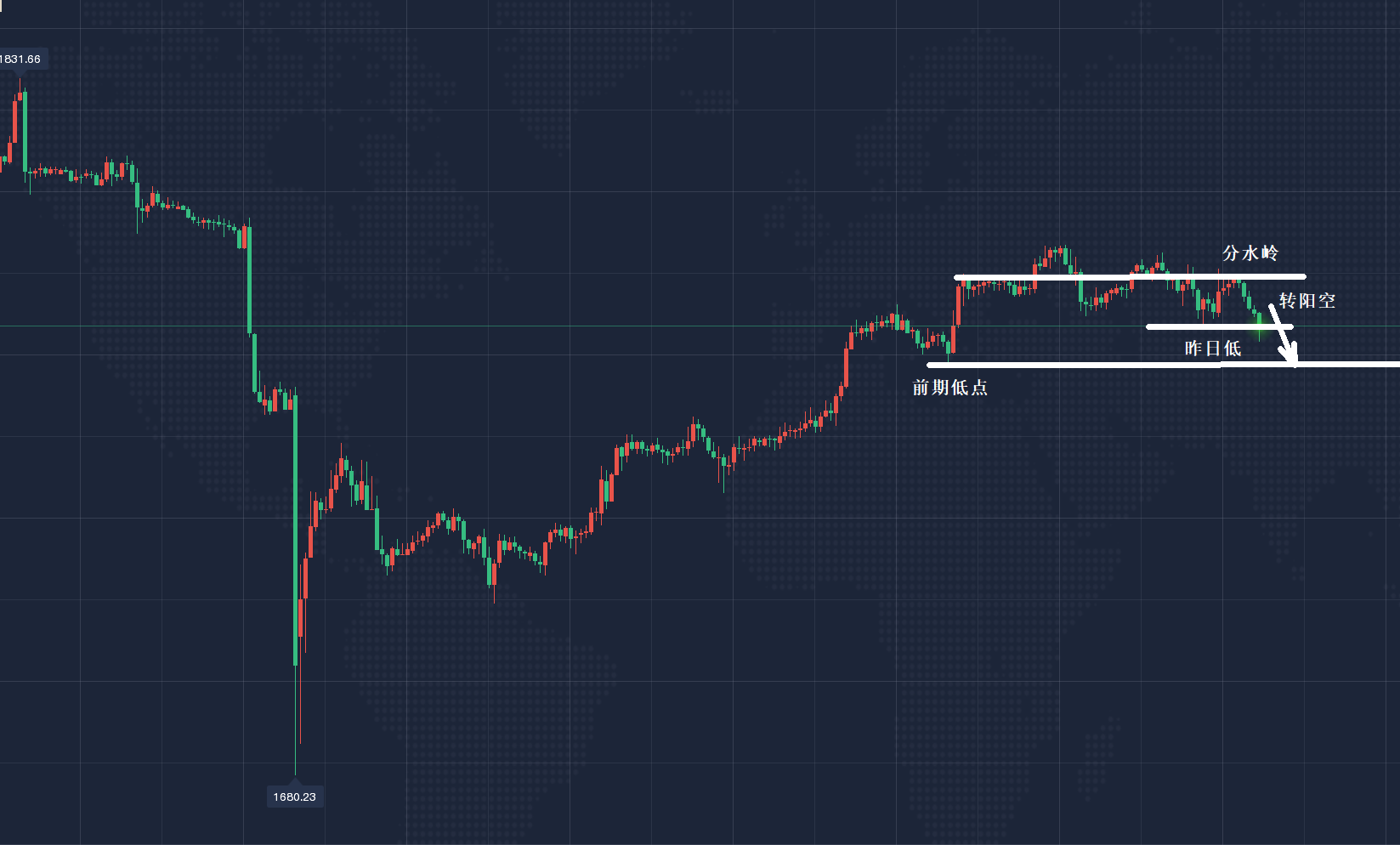 其实在昨日看空中,早间强调的非常明确:这种十字K,顶底是分水岭,由于前一日大阳,后面只要欧盘不破高,美盘就看回撤。