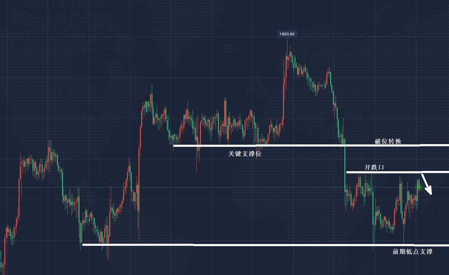 一方面,价格在欧盘上升,抗跌不破前一日低点,且欧盘突破分水岭,那么美盘就看震荡,一方面上升看延续,另外一方面,大趋势下跌,上冲后继续看二次回落。