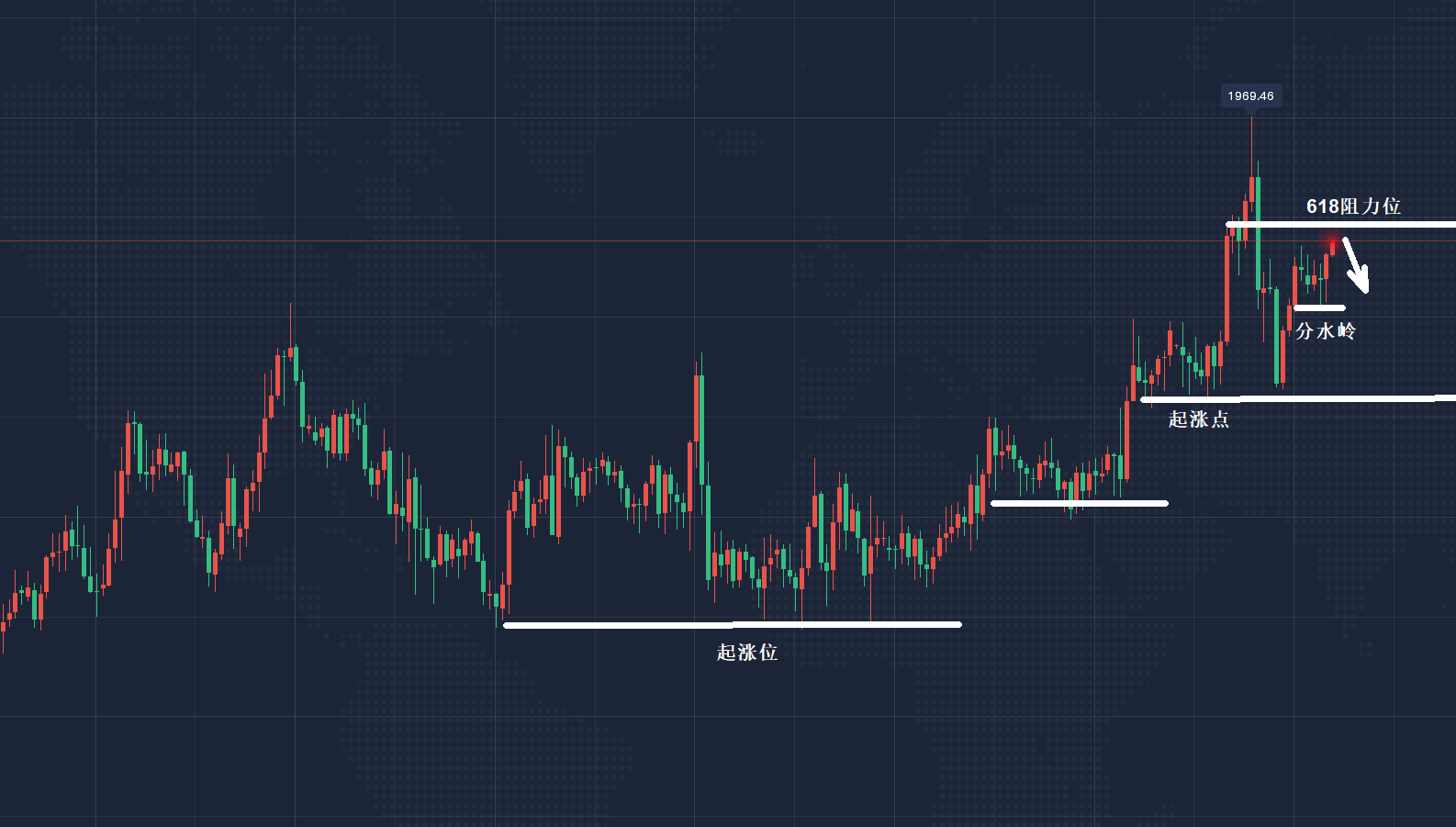 2,如何选择美盘的做多位?由于6-8点探底回升,走了破高,后面回撤做多,要关注双底位置和整体波幅的382位置,这就意味着后面做多应该在1953-4一线。