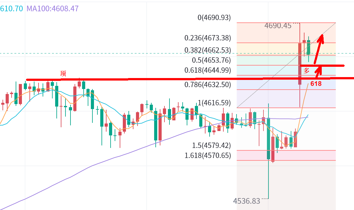 那么日内再次低多,先考虑4653附近。极限顶底转换位4641-3一线加仓位。