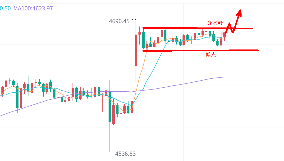 但这个分水岭只能是破高后起作用,区间震荡,意义就不大。