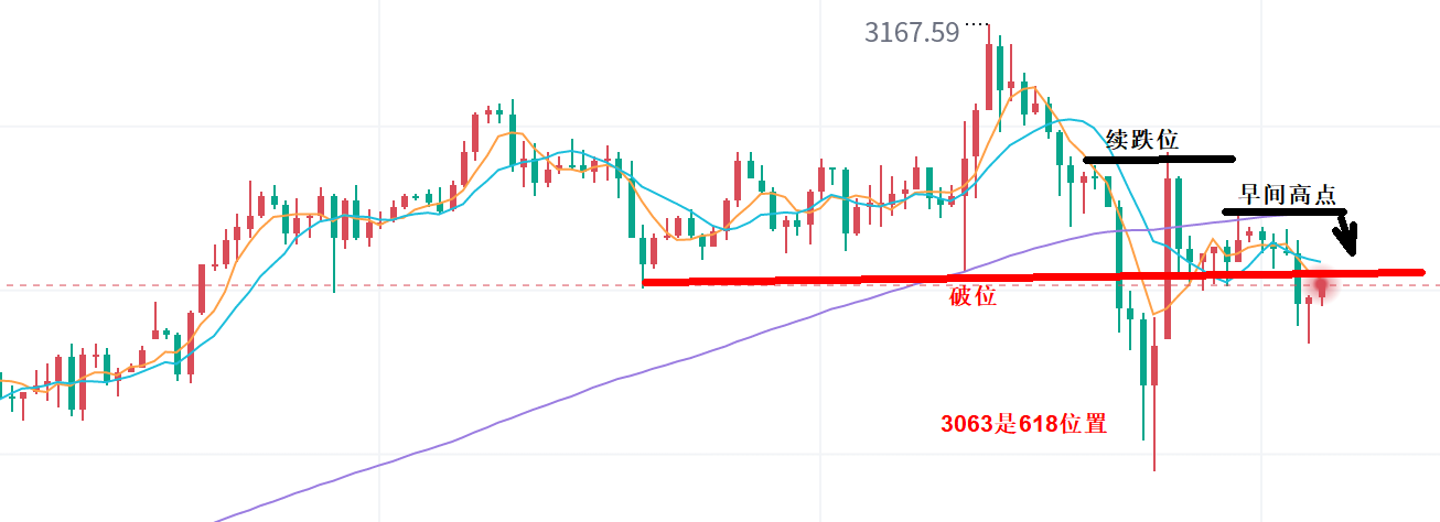 又去看了下周末的周分析,节奏上完全重合,就是在3000点支撑洗盘,然后给多头上升表演,逼空到3080-90一线。 遗憾早了一日再震荡中看偏弱,节奏上偏失去。 昨日早间分析中提到一点:震荡,没有给大家一个明确的方向。 特别是早间上升,破压制高点,因为是午后继续多,但一个震荡,可能让大家