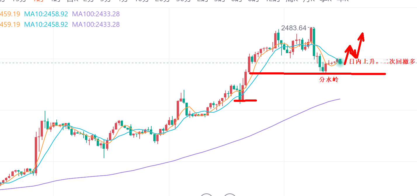 起这样的标题,估计很多人又开始喷了。 但是我相信昨日你的多单一定是赚钱的,价格在2458-2476走了三个来回。 标题只是一种观点的阐述,内容是我们对每日走势方法的解读。 你拿昨日的行情来说,主要讲了两个点: 第一,事不过三,我们认为价格在强势破高当中,续涨到前期高点,一定