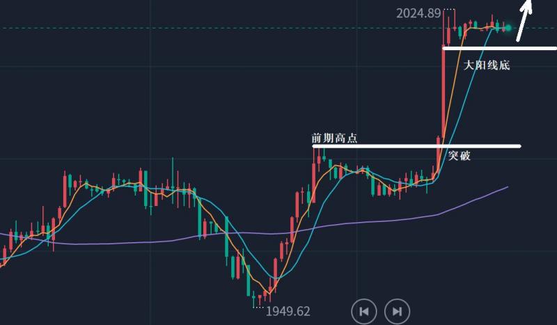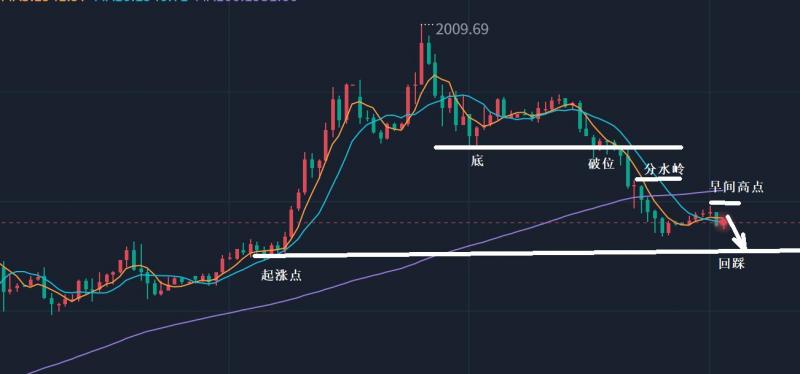 今日方面我们还是简单直接从行情方面入手: 第一,周五冲高回落,收盘日线触及2000后没有再度破高,形成冲高回落,而这个时间点恰恰在凌晨,并且日线是大阴。 第二,按照回撤的时间点和前面有连阴的节奏来说,今日还有望回撤。 毕竟注意两个点: 第一,强势当中通常是单一模式。 但是现在的形