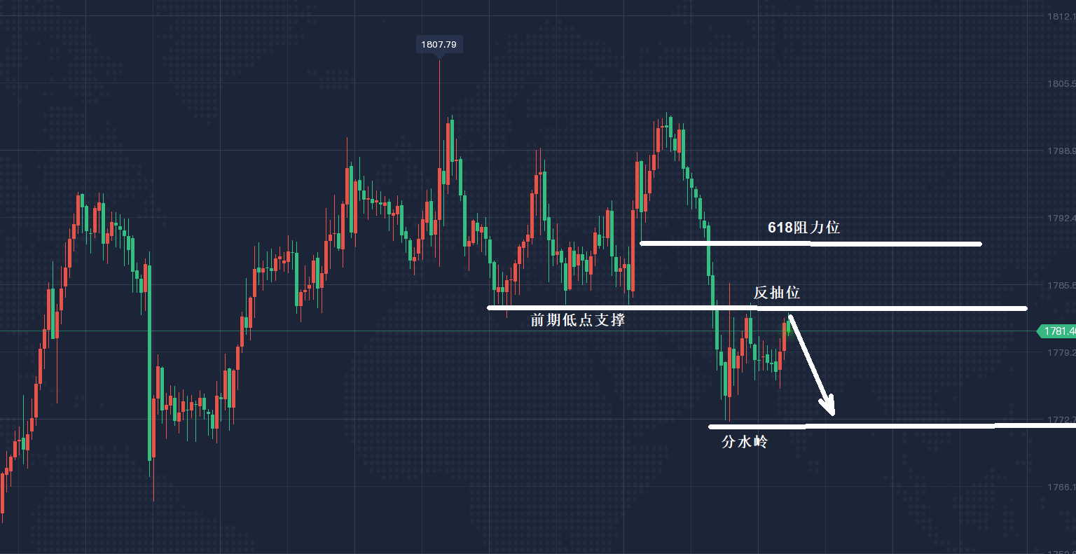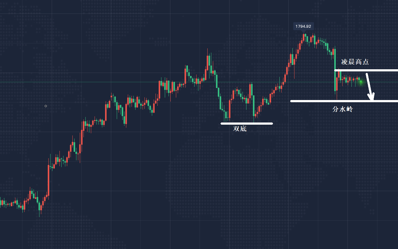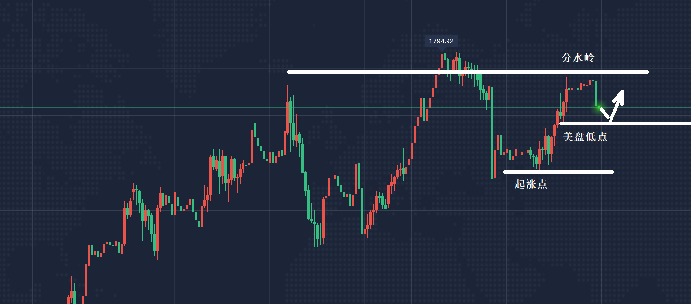 黄金方面,昨日小阳续涨,触及1800关口一线,且还没有到头的意思。一个是连阳上升还再不断破高,另外是调整有限,单阴修正。 而日线强弱的分水岭,就是看形态。 而昨日也强调了分水岭的两个类型:时间和价格。 对于价格来说,就是前面多次压制的1790一线,而对于时间来说,就是欧盘运行的方向。 昨