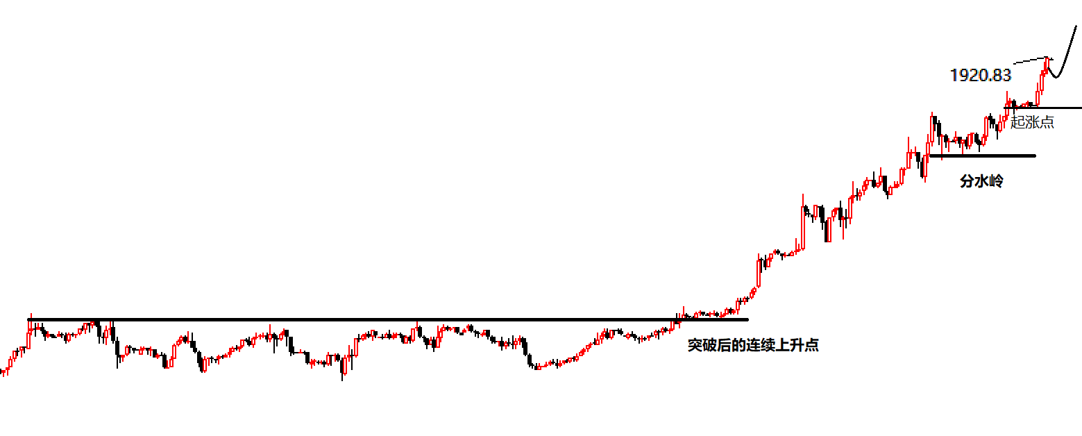 黄金终于迎来了6连阳,这是我们期盼已久的,也不知道强调了多数遍: 1,上升的初级阶段才会反反复复,洗盘来回运行。 2,每一次上升的开始,没有加速,没有连阳,就不会有多头到顶的风险。 3,极强才是行情中最容易赚钱,也是最快的一段,而这个过程,就是连续走阳,不怕高,不惧高,不猜顶,不赌空。 1920