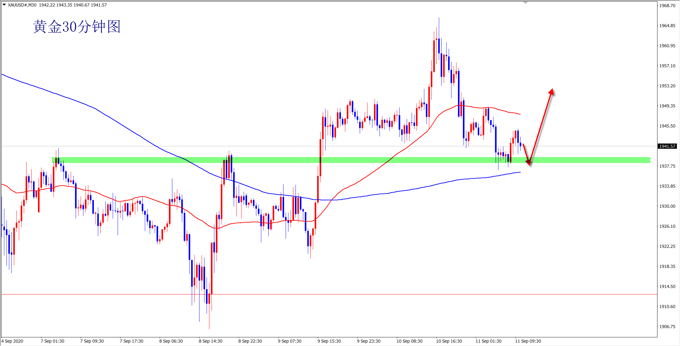 欧盘依托1940支撑直接干多即可!防守则是今日回踩低点附近,也是250日长期均线支撑位置1935即可!上方先关注1950的压力,突破必然会收复昨日的跌幅,甚至创出新高!欧盘干多,1940附近直接多!