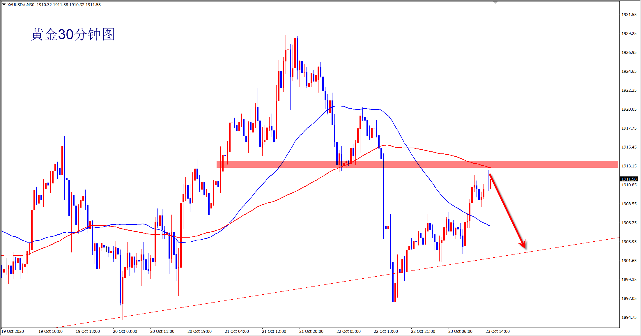 最近黄金的走势属于震荡行情,多空持续性不足,大跌之后可以大涨,大涨之后也可以大跌!但震荡之后必然会选择方向,而当前的走势依然是震荡偏空的行情,上方1930位置关键阻力没有突破,而下方的支撑则是在1880区域!