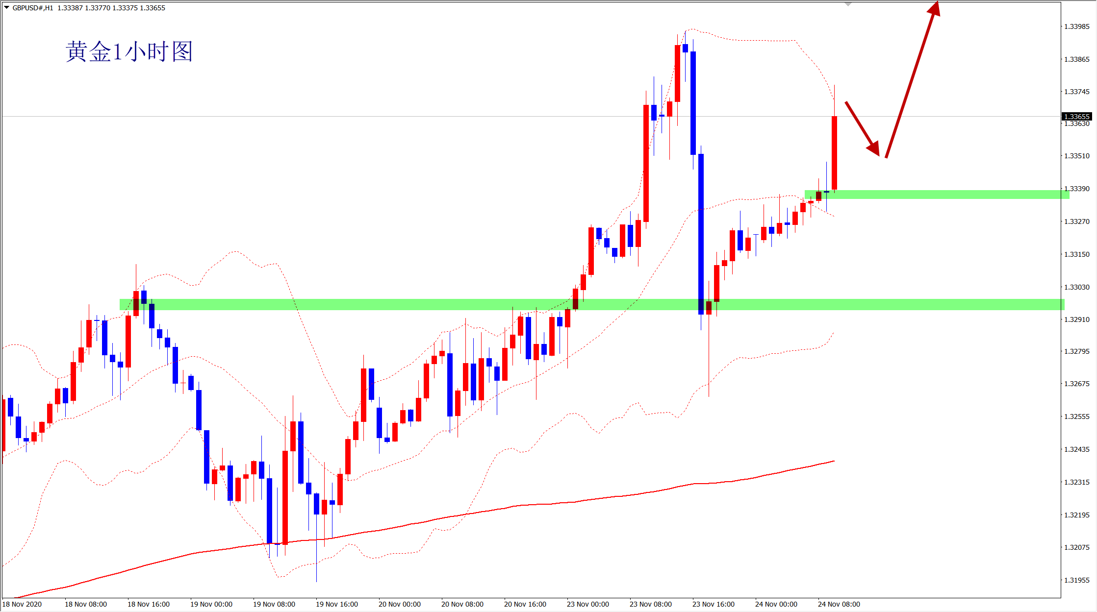 美盘镑美继续干多看涨,突破1.340后加仓多看涨至1.350区域!