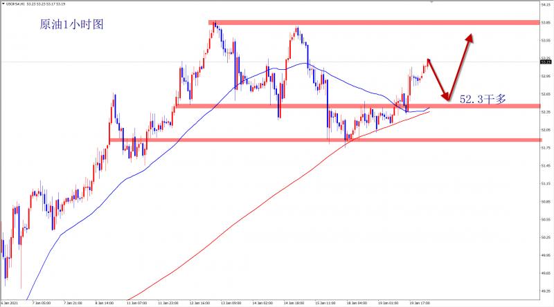 原油明显的上涨趋势,这一点已经强调过多次,对于原油这个品种,操作上一定是顺势,因为你不知道他最终走向哪里!相信负油价大家还清晰记得,没有什么不可能!在1小时级别上,原油上涨按下暂停键,短线进入震荡走势,回踩长期均线获得支撑再次上涨,上方将会继续测试53.8前高压力!