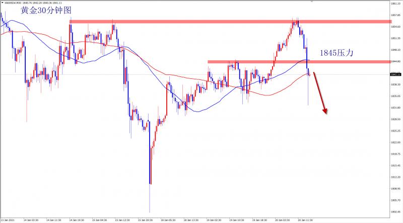黄金大阴转空,美盘反弹先空了!今日凌晨是美国总统交接,如果平稳过度,对于黄金属于利空,黄金再次破位下跌的概率较大!