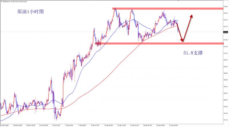 原油大涨后震荡修正,短线围绕51.8-53.8区间内运行!区间很固定,走势很清晰,早盘回落51.8-52支撑区域内继续干多!