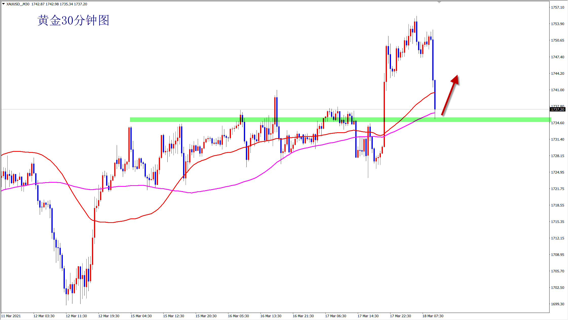 黄金1735多,止损1730,目标1745-1755;