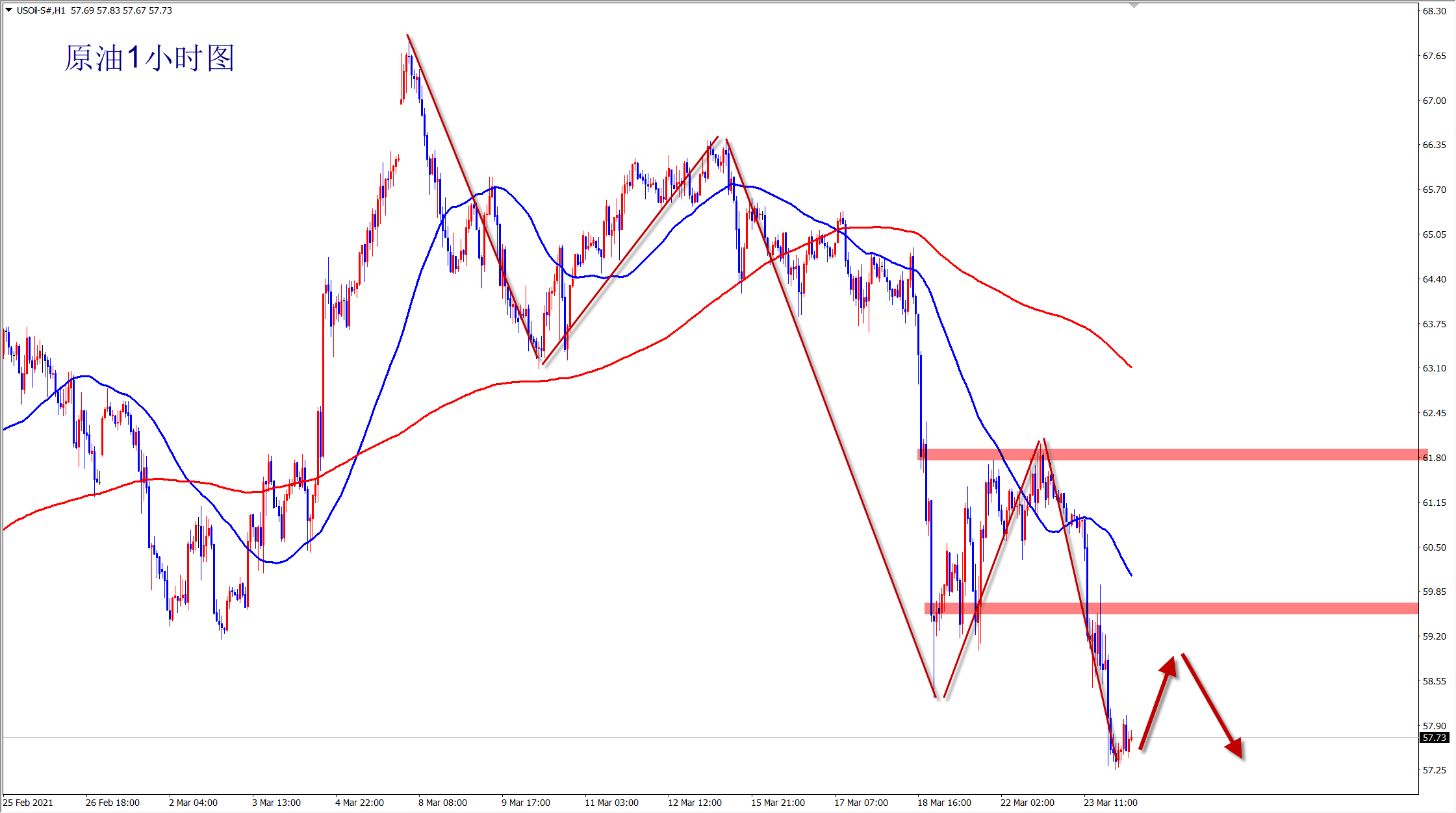 原油57.5多,止损56.8,目标58.5-59;