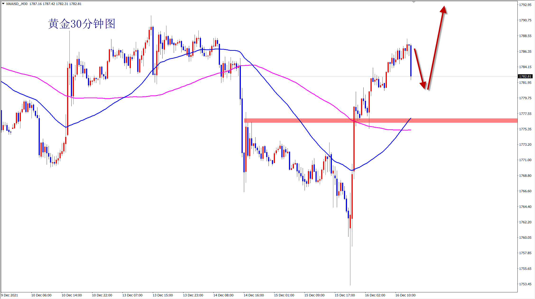 黄金当前明显的多头上涨走势,方向很明确,思路很简单,小回落就是直接多!当前行情震荡上涨,回落幅度较小,操作中一定要果断,小回调直接多,美盘1780支撑上继续干多,上方关注1795压力,美盘大概率直达1800!