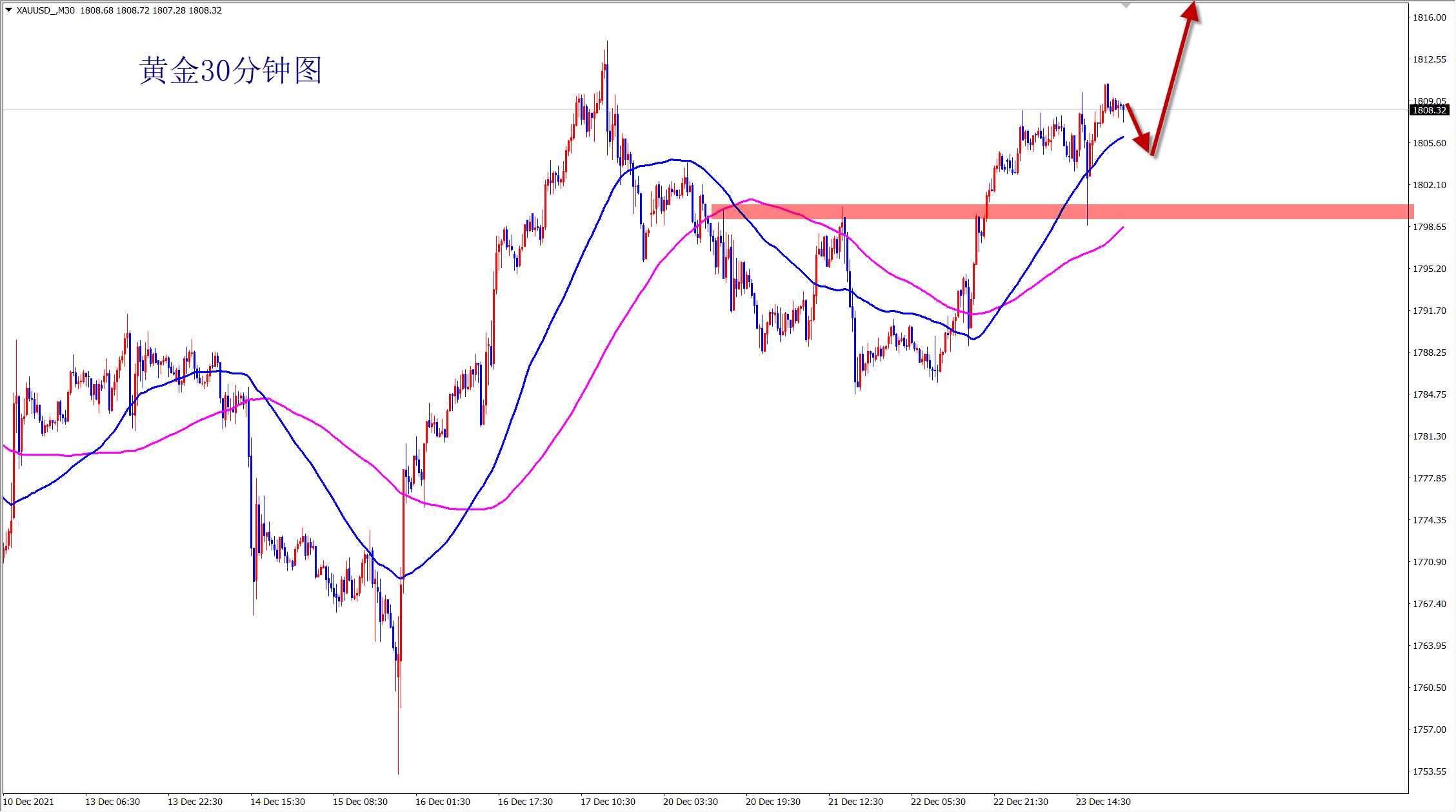 黄金当前属于上涨过程中的第二波上涨,此前1752-1814的上涨非常强势,现在从1785位置再次开启上涨, 短线还是遇阻1815前期反弹压力,但是遇阻后回调能直接再次拉起,说明多头强势,突破只是时间问题!