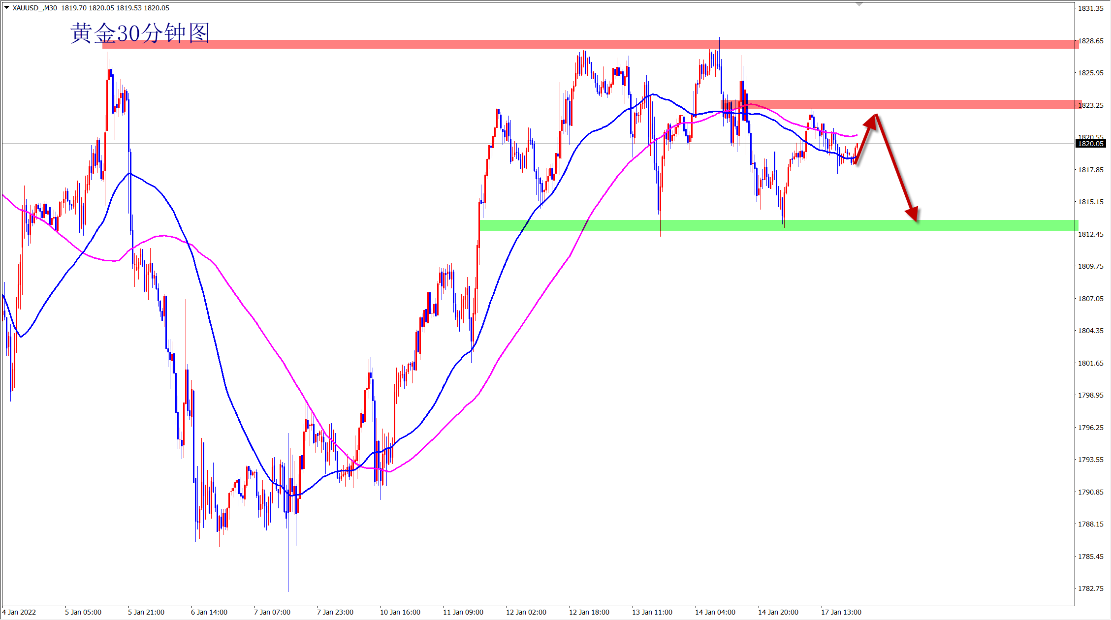 黄金当前高位盘整,久盘必跌,我们一直坚守高空思路,昨日1823空如期下跌,今日早盘1820空再次下跌至1813一线获利!空单两连胜!欧盘维持看跌思路不变,反弹继续空!