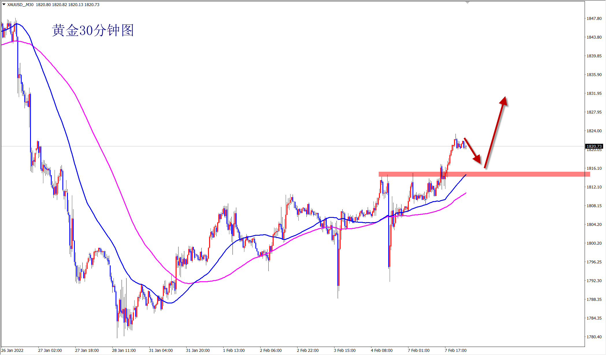 黄金1815多,止损1807,目标1830-1835;