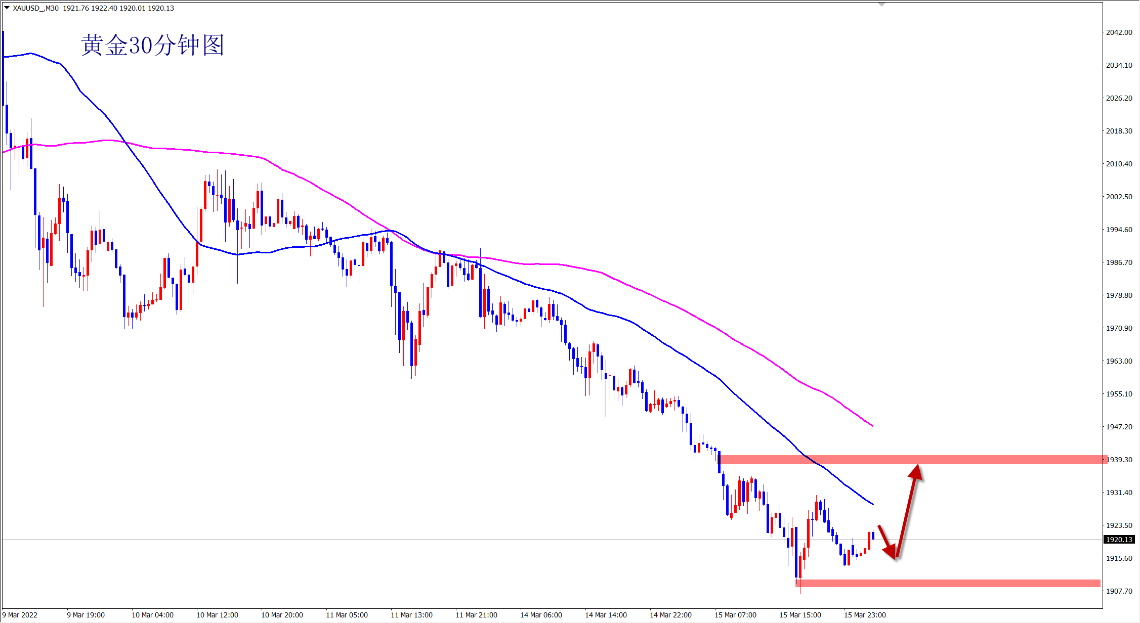 黄金1915多, 止损1907,目标1930-1940;