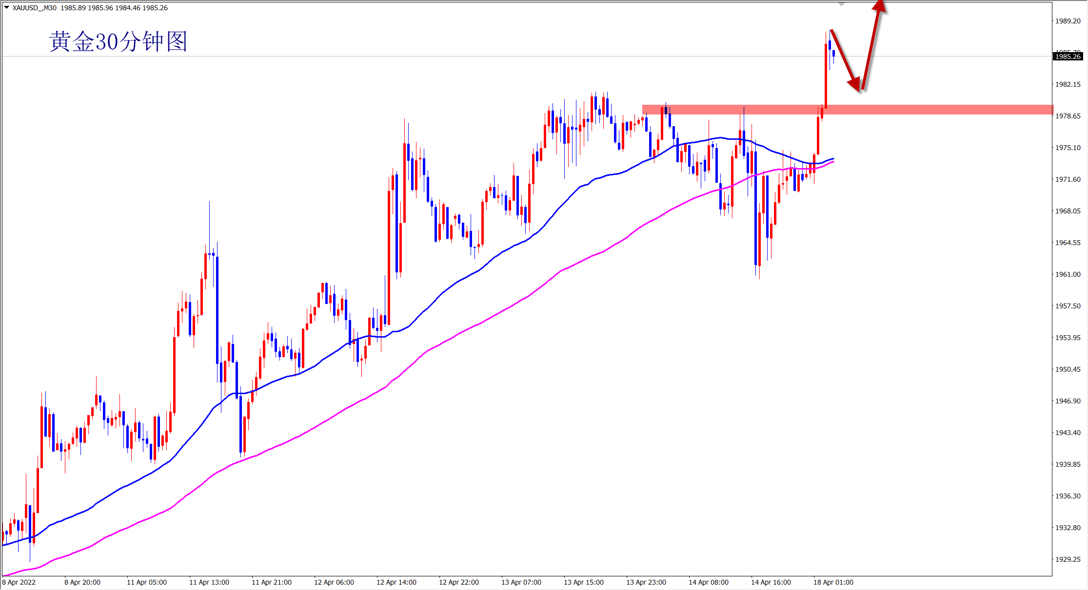 黄金1985多,止损1978,目标2000-2010;