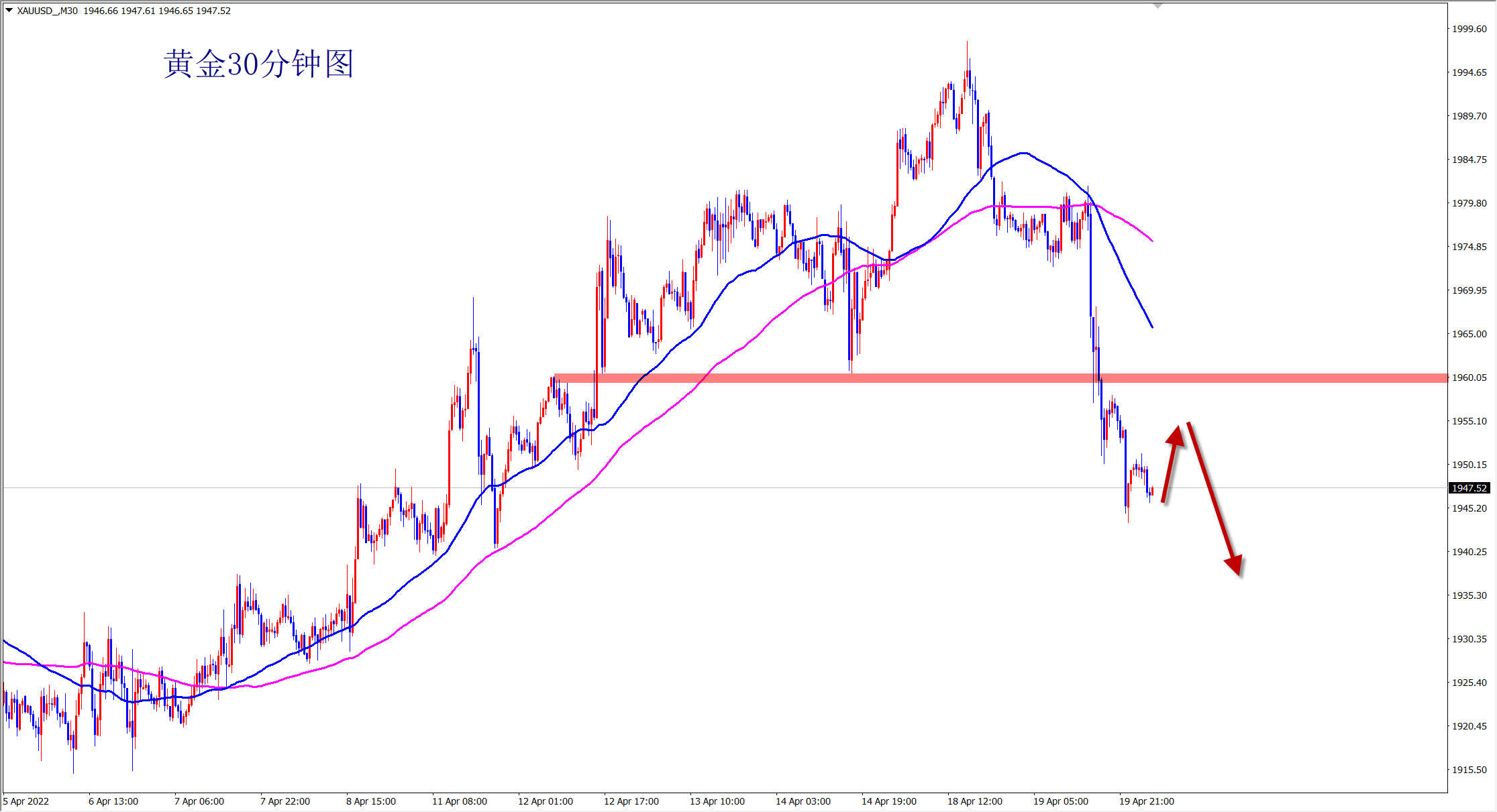 黄金昨日破位后大跌,并且直接跌至我们所强调的1945的目标位置!计划你的交易,交易你的计划,仅此而已!