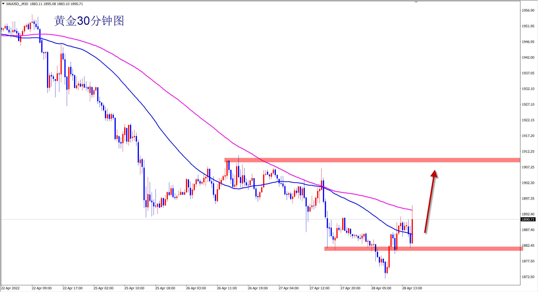 多,美盘开始转多看涨了,依托1880的支撑低多看涨,上方的压力继续关注1910,预计黄金将会开启一波反弹!