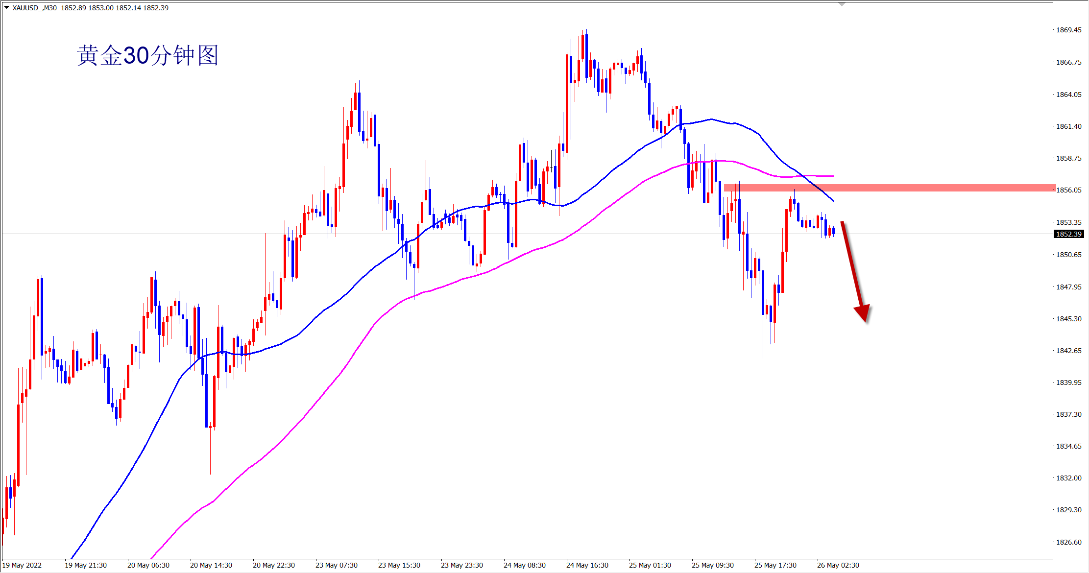 势不变则守,势变则随!顺势而为,一直是我们操作的第一原则,当前行情转跌,继续高空,早盘1856压力直接空,反弹无力,最终只会继续滑向更低!
