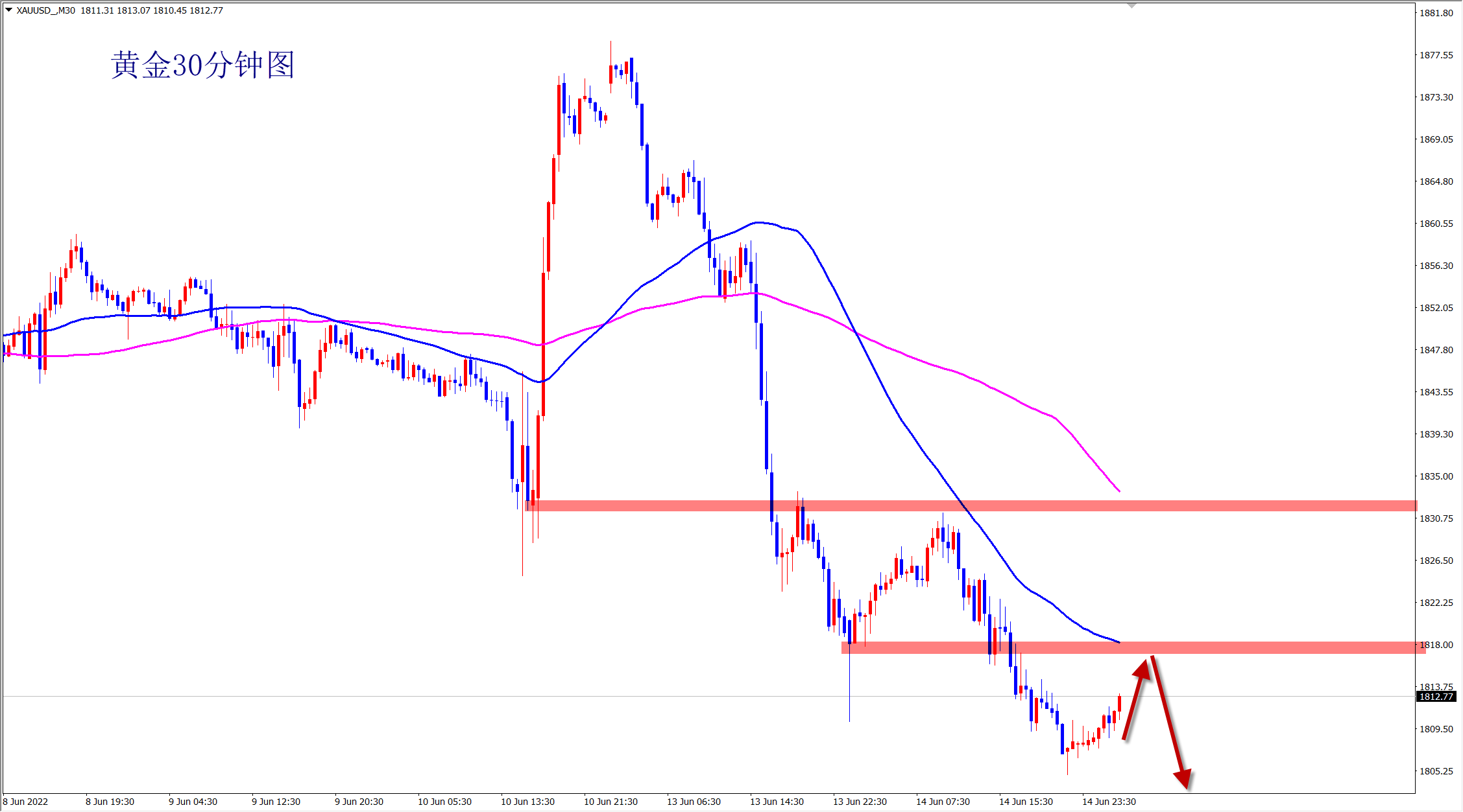 当前黄金下跌趋势不变,反弹继续干空,1820是压力位置,今日反弹后继续空,下方目标1800关口是否破位。