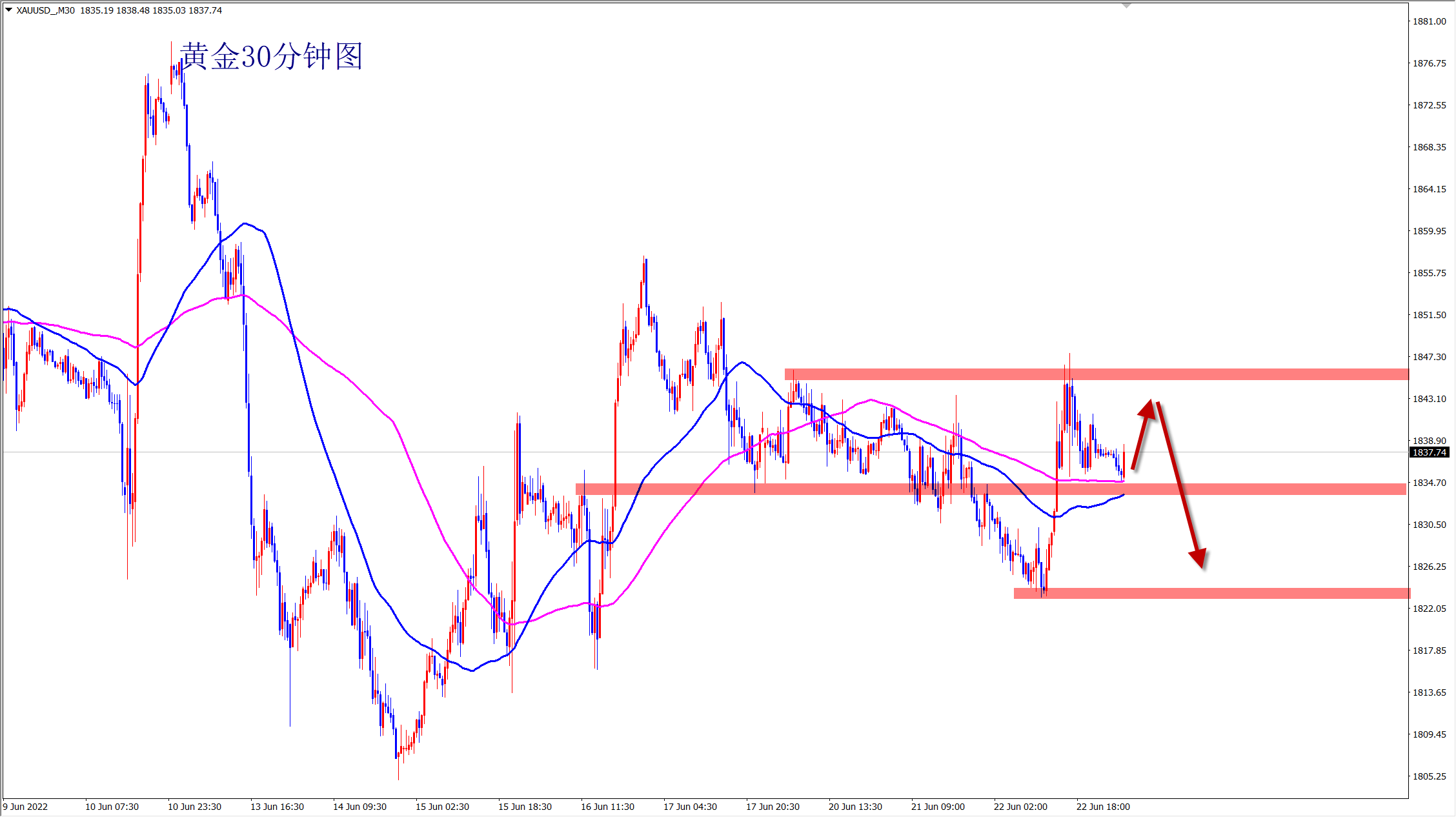 黄金最近走势反复无常,非常折腾,但是依旧有规律可循,操作上不能过度追涨杀跌,没有延续性!今日黄金上方还是关注1848的压力,此位置下继续高空看跌,下方的支撑则是1823位置。