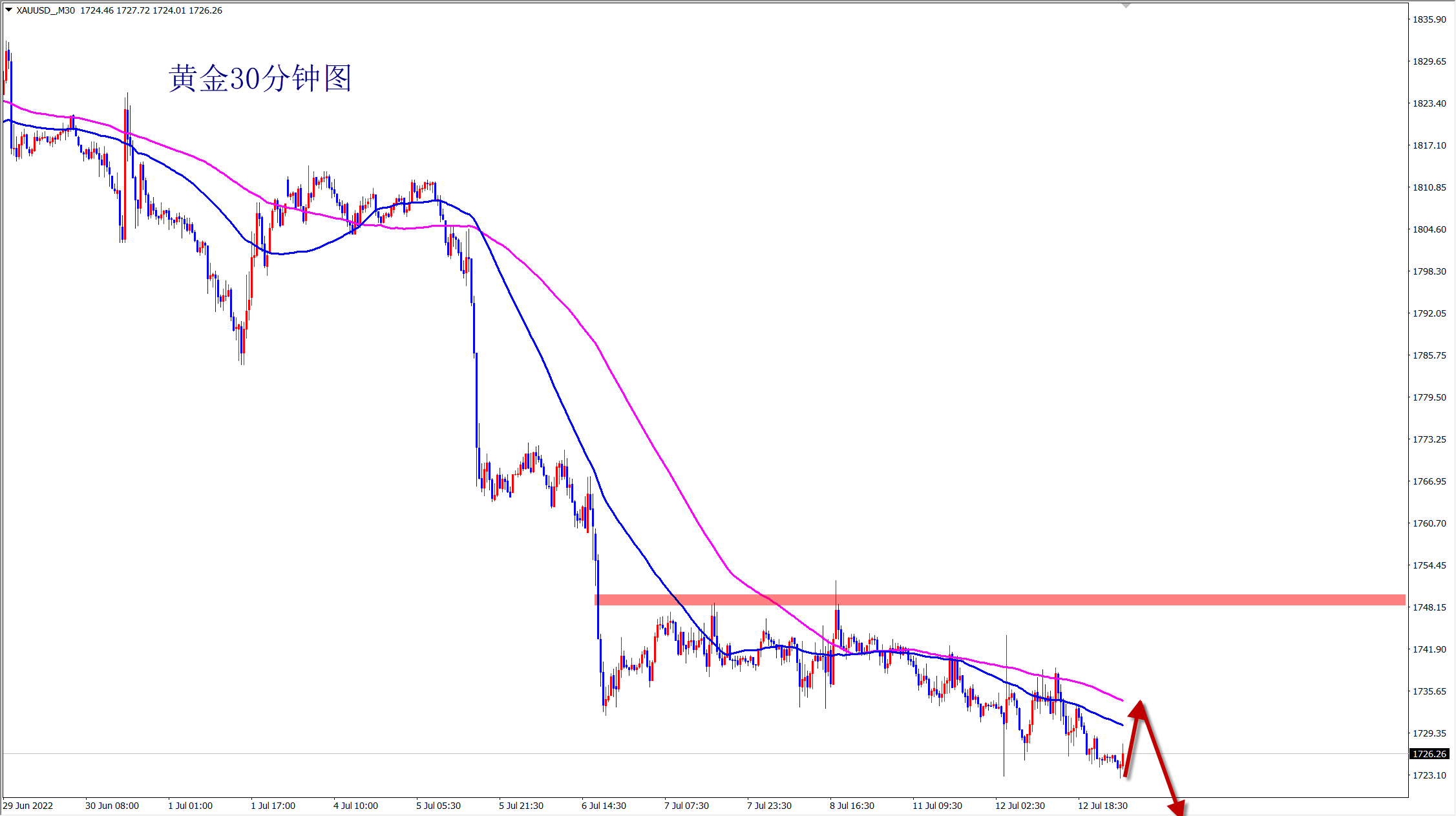 当前黄金还是跌势不变,昨日震荡洗盘后最终还是继续下跌!当前暂时在1720位置获得支撑,但下跌依旧没有结束,反弹压力位置还是继续干空!早盘反弹依托1735继续空!