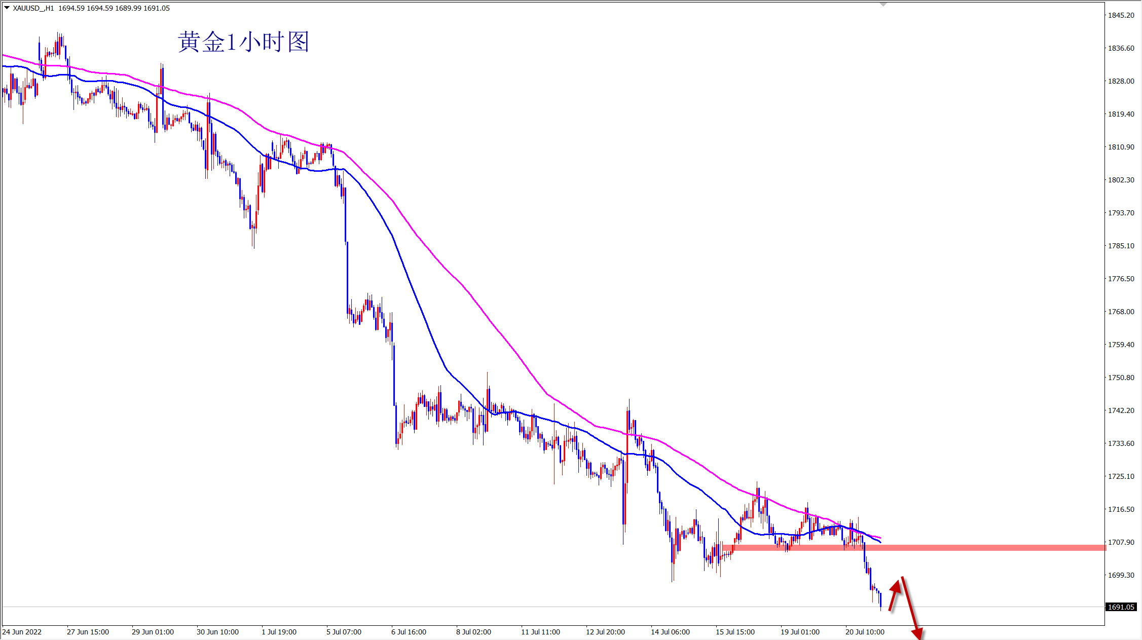 黄金一直是跌跌不休的下跌趋势,中间的震荡反弹,都没有突破关键的压力位置!而当前的关键压力则是1705位置,这是此前的盘整底部位置,也会现在的压力位置,只要反弹维持此压力下方,或者是反弹突破,但是不延续,还是空!