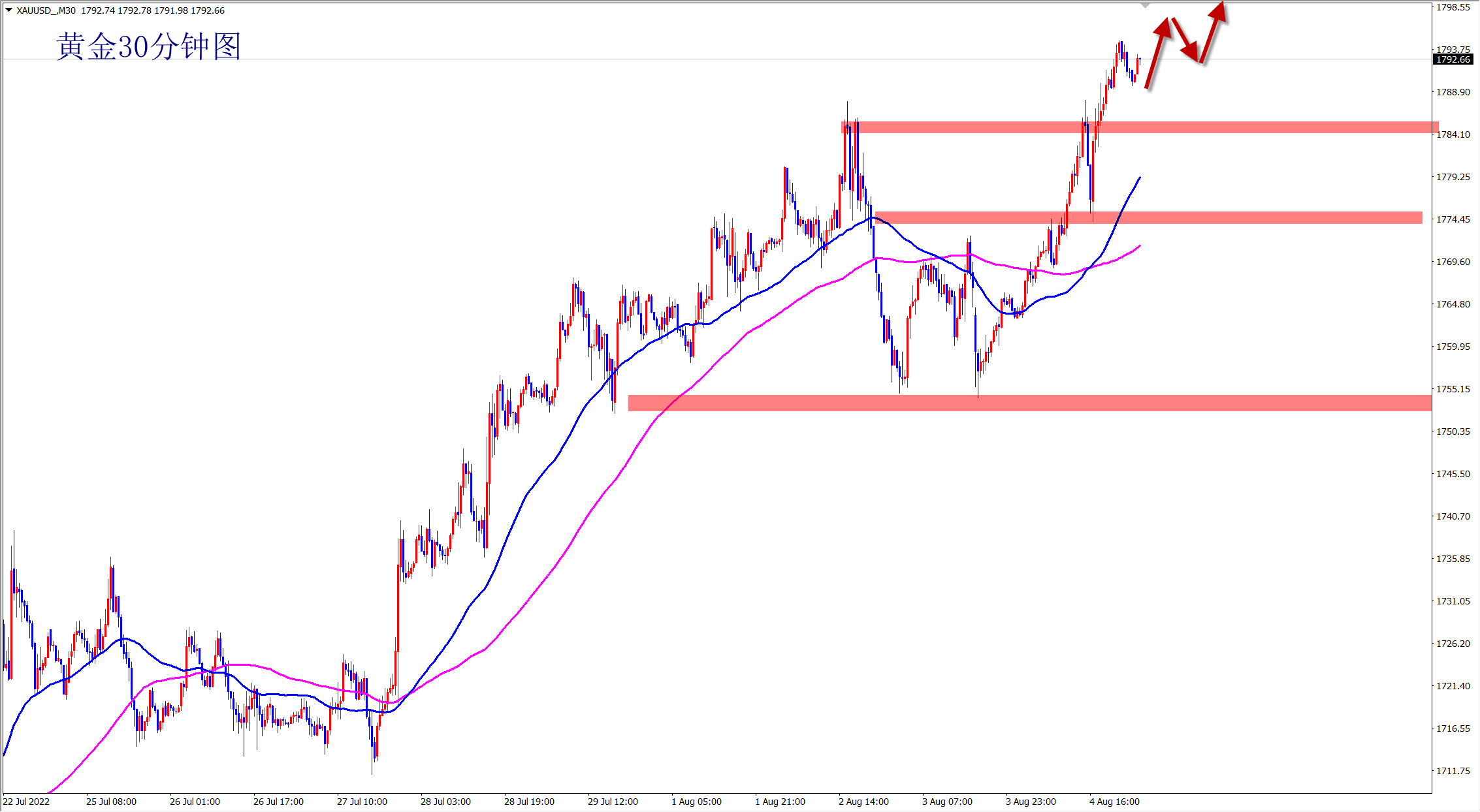 今日是大非农数据公布的节点,当前黄金震荡上涨,趋势清晰,操作上就没有什么难度,如果数据后出现回落,继续干多!套得住时间,套不住价格!趋势点位点位,选择大于努力!干就完了!