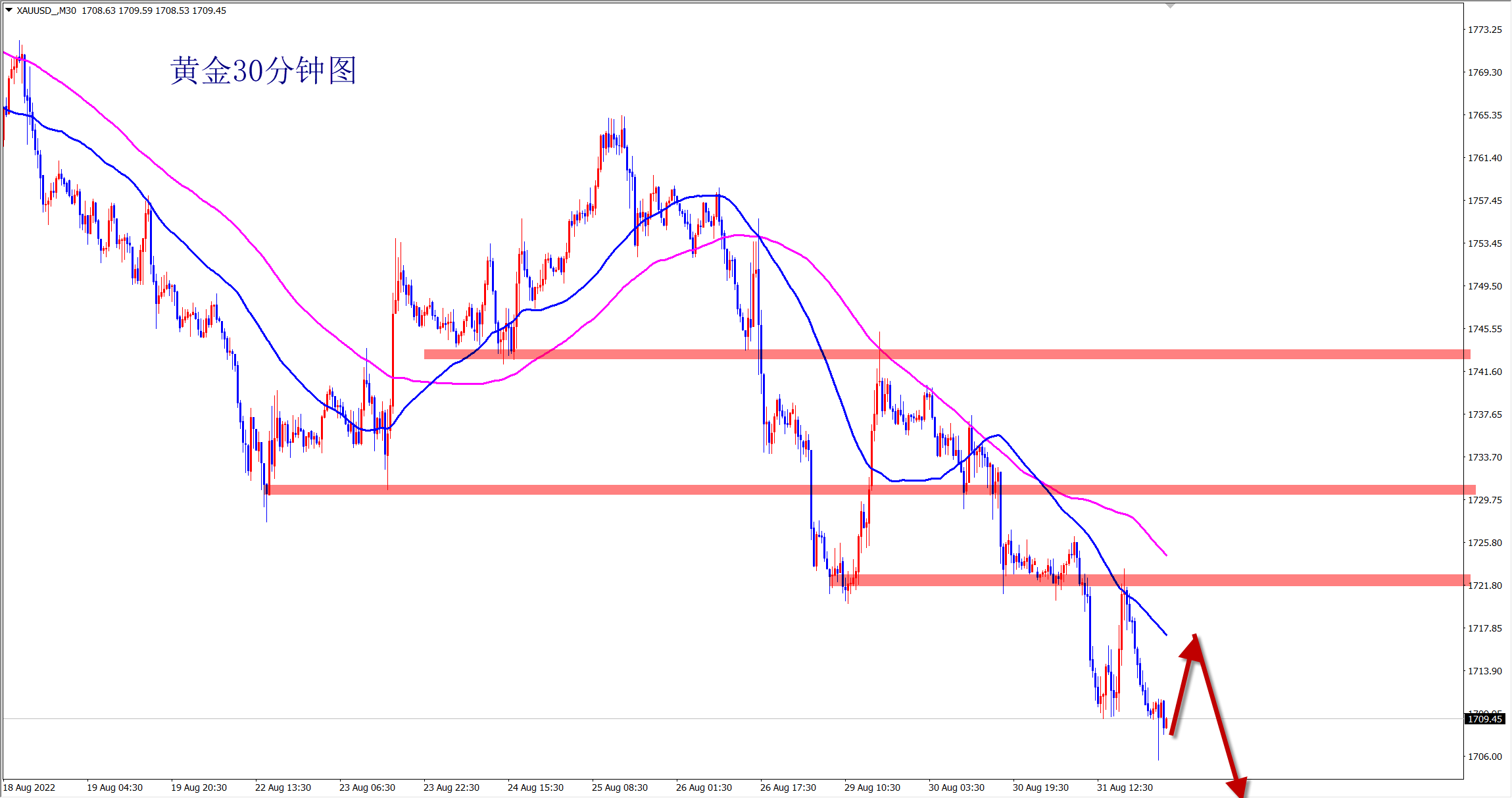 黄金当前继续下跌,昨日美盘王杨在反弹高位1721果断再次干空,最终再次大跌收割!当前反弹没有延续性,还是继续干空!所以早盘依托1720的压力反弹继续空!