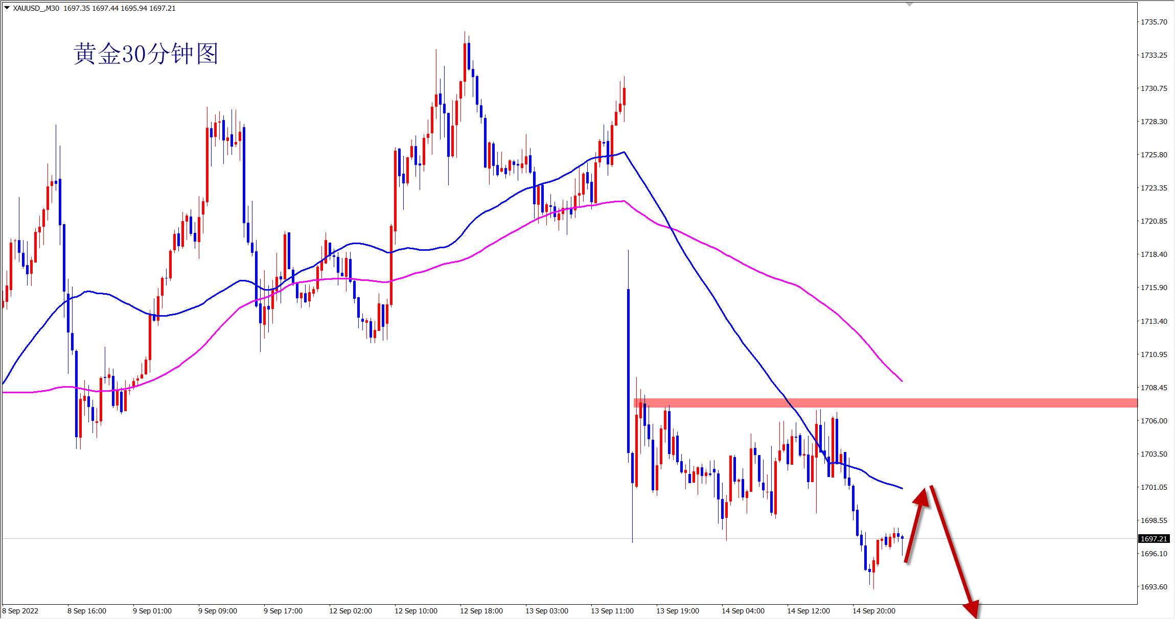 黄金周三利空大跌,昨日震荡修正,今日继续下行,当前1680是前期多次获得支撑位置,今日的焦点也是此位置是否破位!