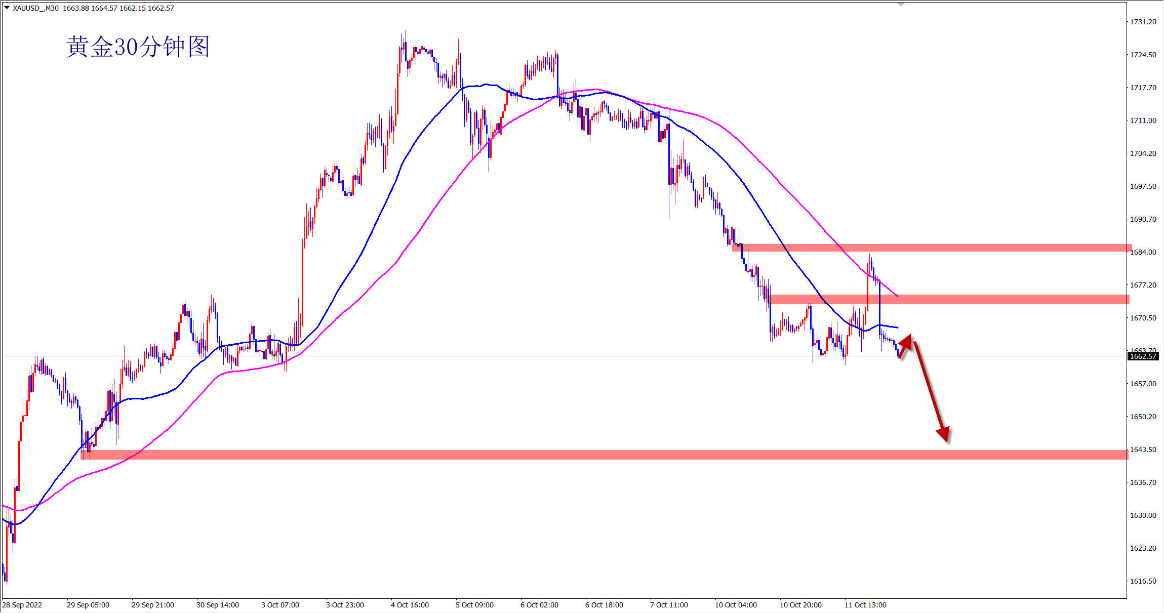 趋势为王,点位致胜!今日黄金继续干空,依托压力位置反弹直接空,如果直接破位1660的支撑,下方的支撑则是1640位置!