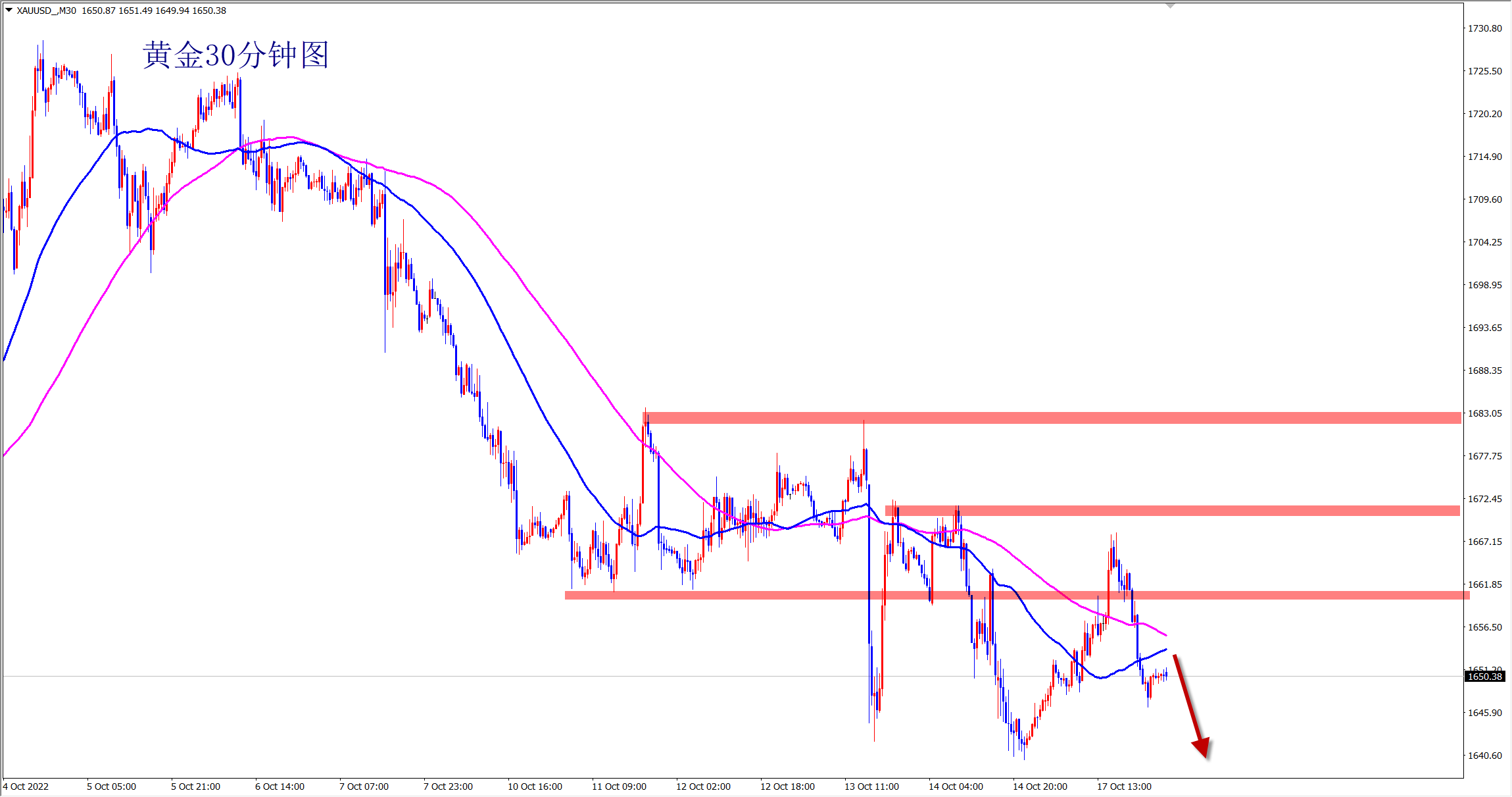 昨日黄金大涨大跌,今日行情会先进行震荡修正,早盘等反弹后再空,上方继续关注1665位置的压力!