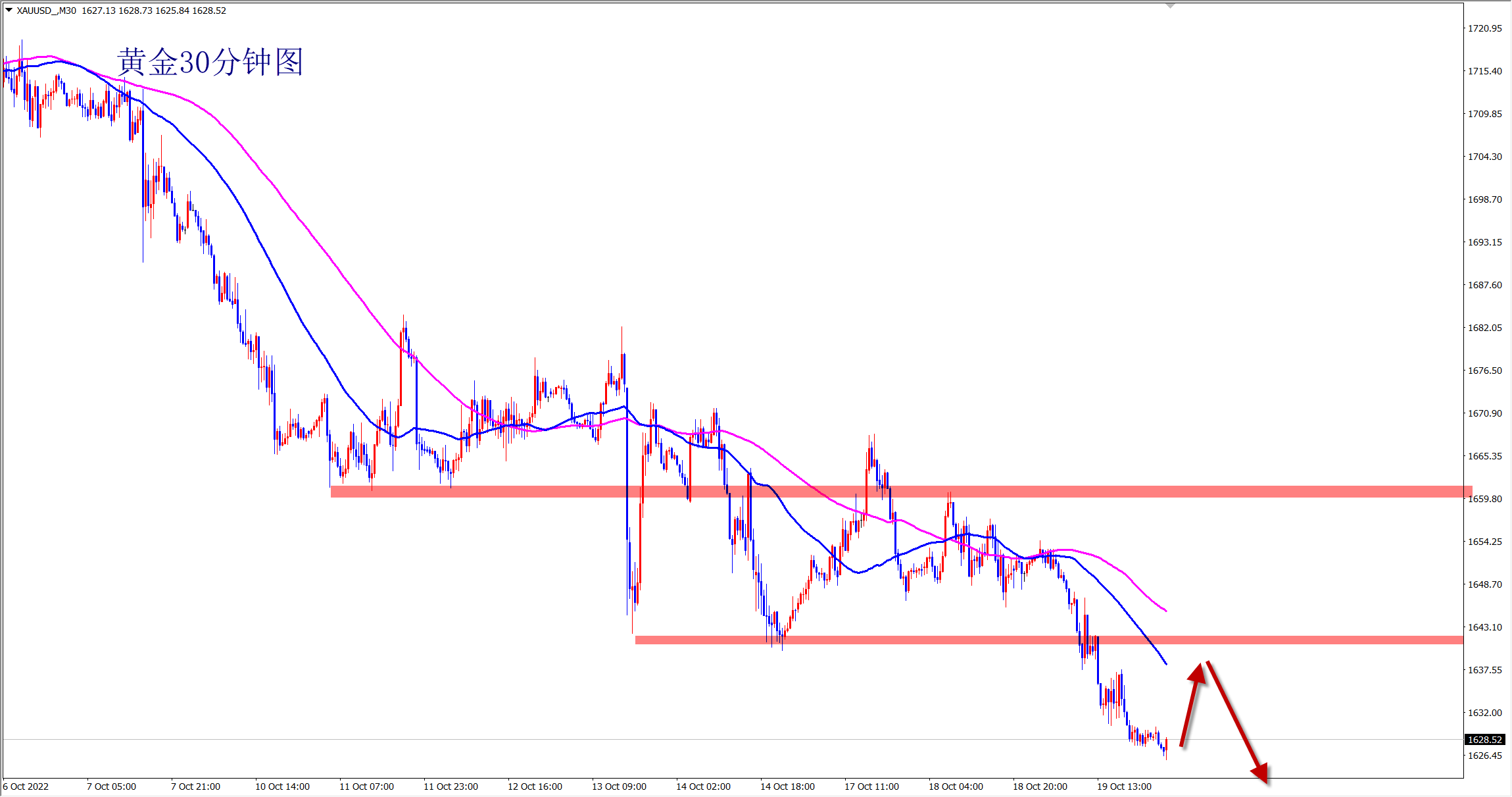 黄金上方的压力是1635-40区域,依托此压力反弹即可直接空,下方是否破位,关注1615前低支撑!