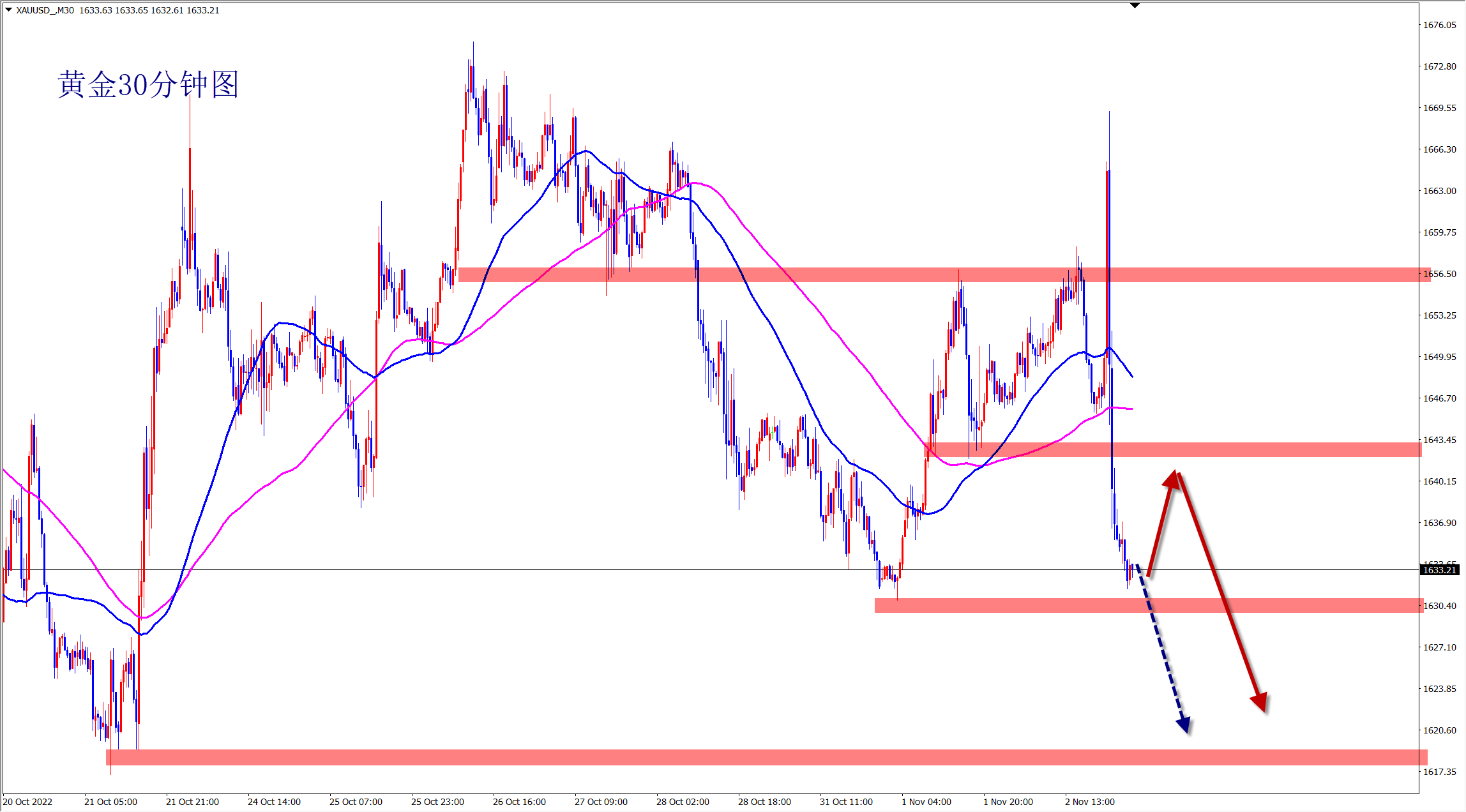 趋势为王,点位致胜!当前的黄金大方向仍是空头下跌走势,短线大区间内反复震荡!此前市场预期美联储会暂缓加息,黄金有上攻的可能,但是今日鲍威尔讲话后黄金上涨预期落空,继续跌!