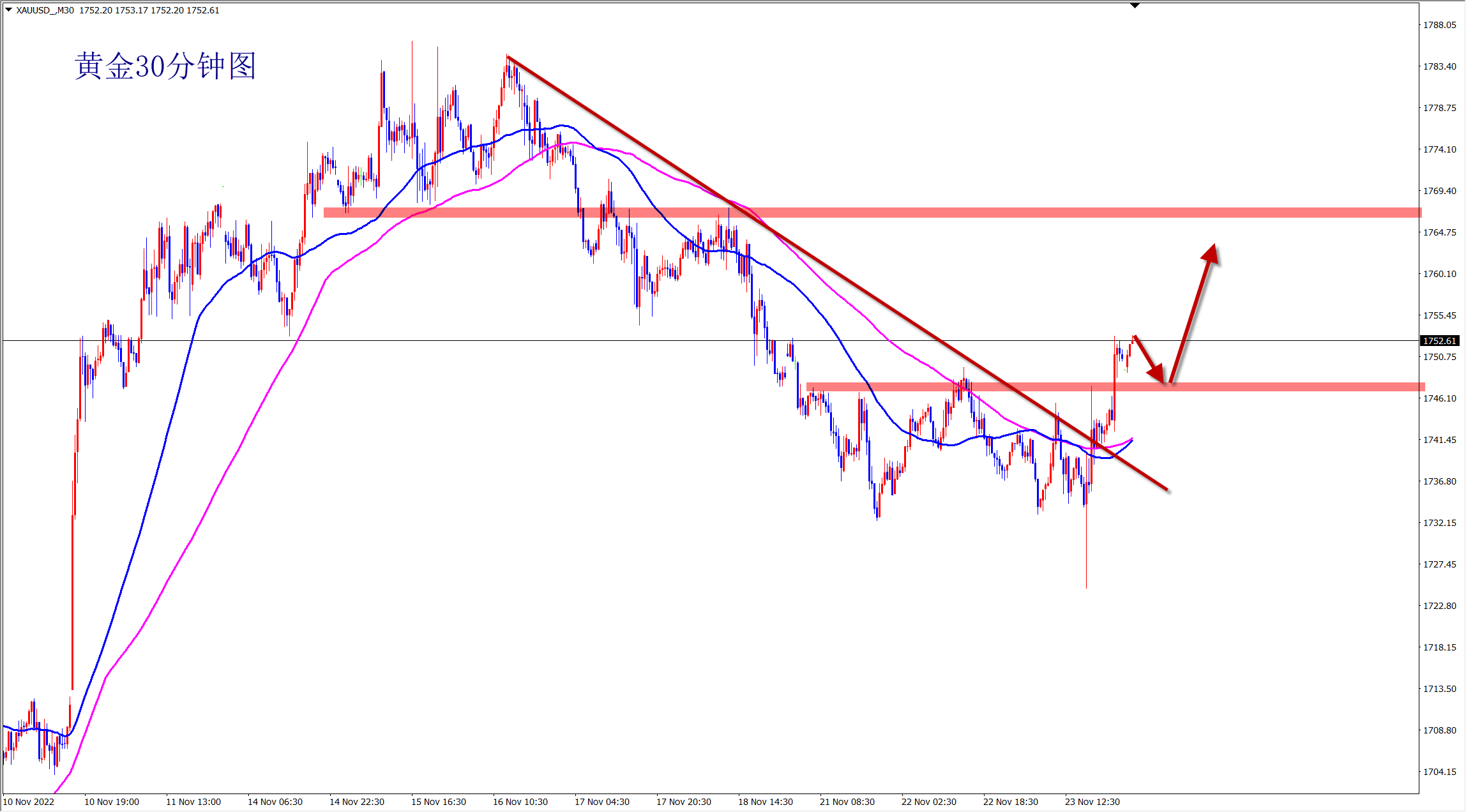 当前黄金已经突破下跌趋势线的压制,并且昨日破位大跌后被快速拉起,并且强势突破压力!凌晨美联储会议纪要,显示鸽派,大多数委员希望放缓加息步伐!利多黄金!今日黄金还要继续涨!