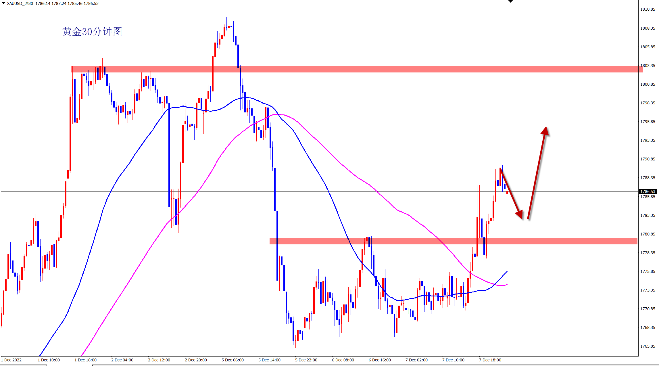 黄金震荡后突破,市场再次选择上涨!方向已经明确,操作上就要跟紧市场走势!多,回落直接多,看涨!
