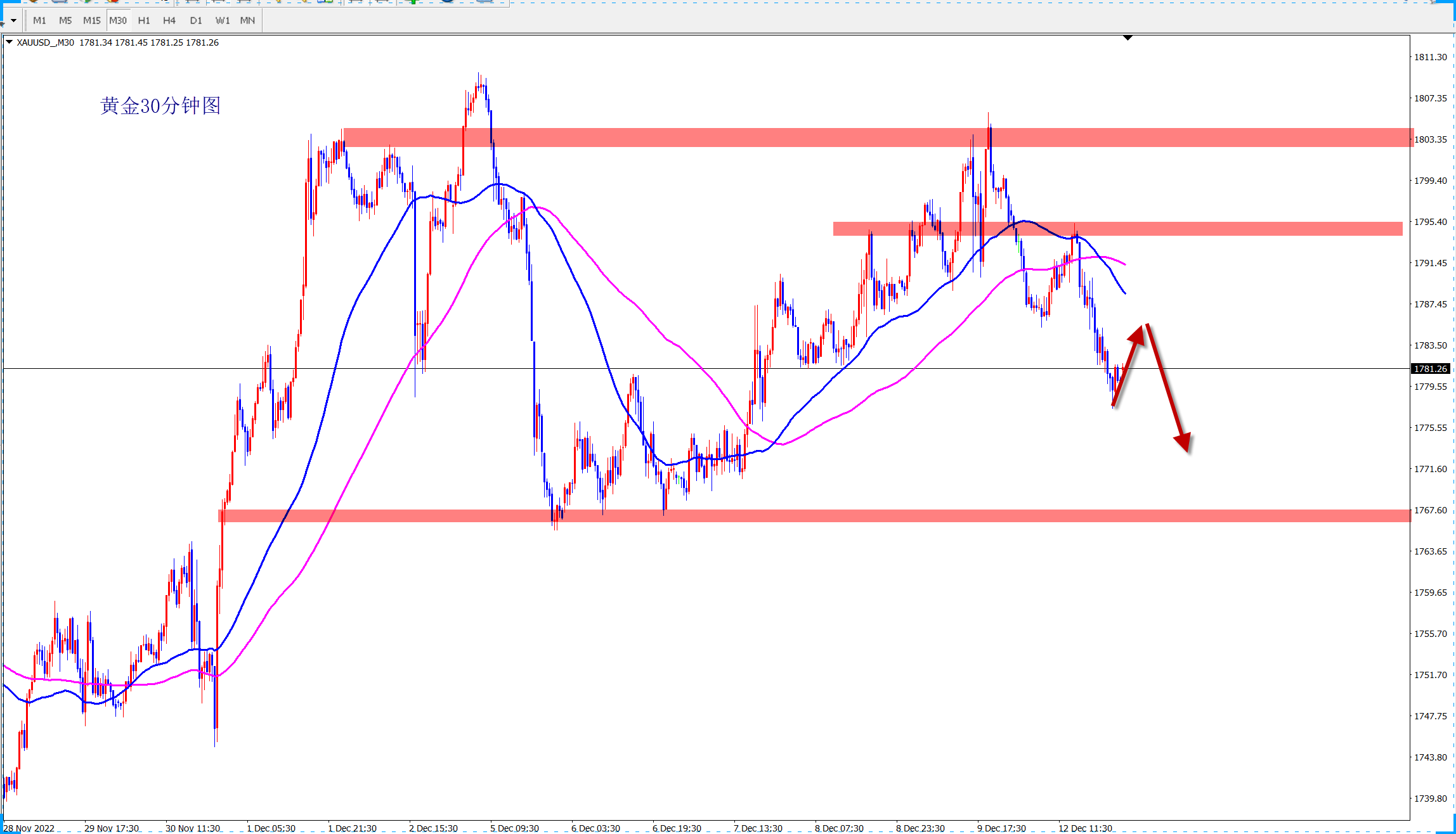 黄金1795空,止损1803,止盈1770-1760;
