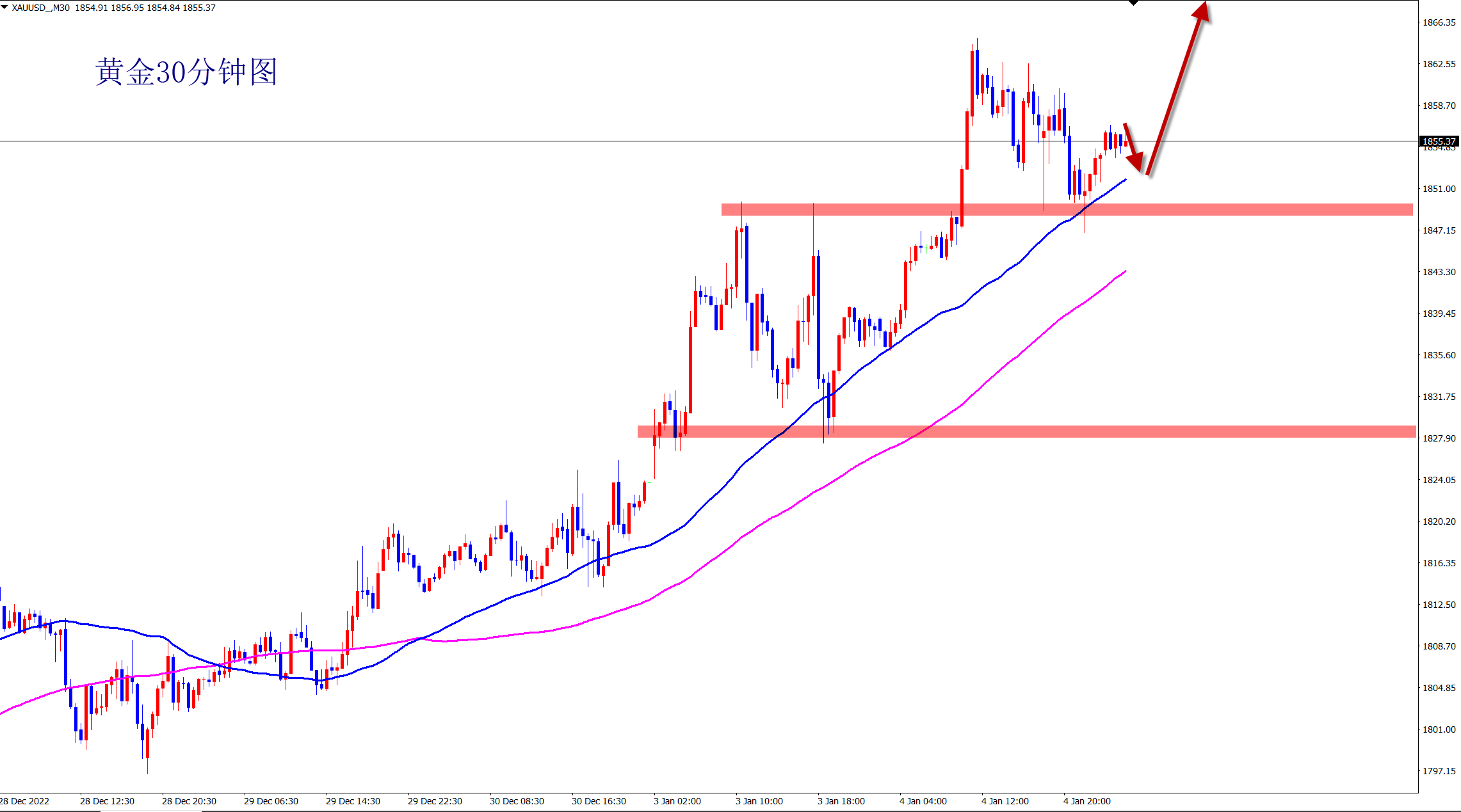 今日早盘,黄金还是继续干多不变!依托昨日回调支撑1850位置支撑看涨干多!上方短线的压力是昨日高点1865位置!突破后将会直达1880!
