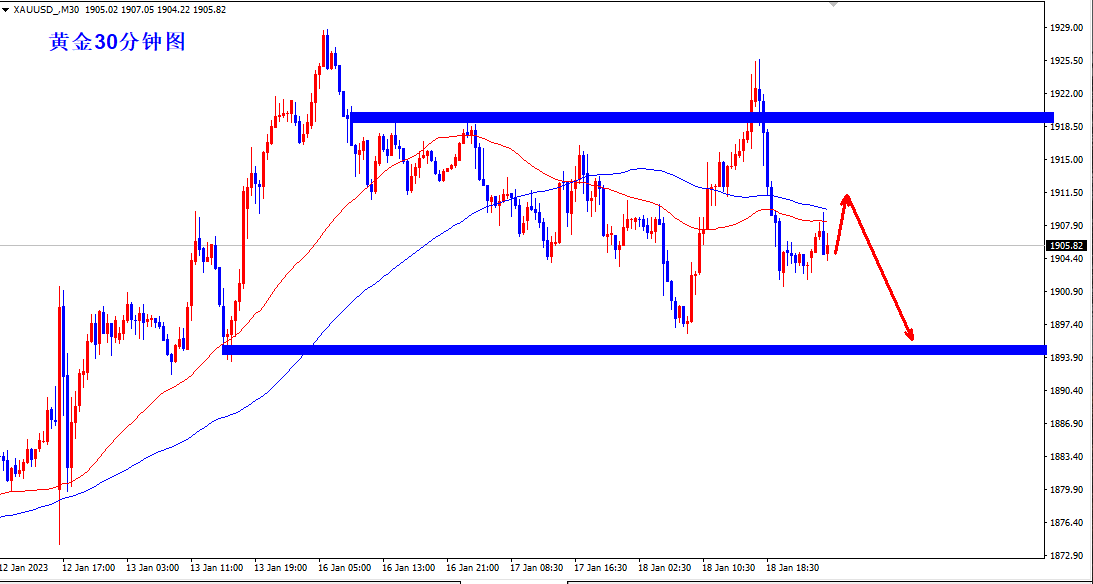 黄金1915空,止损1923,目标1900-1890;