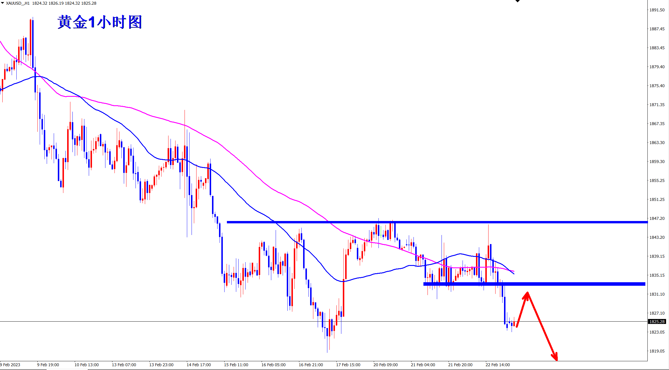 黄金昨日大跌,王杨1845空,1839空统统获利!跌势继续,今日反弹依托1835的压力继续干空!