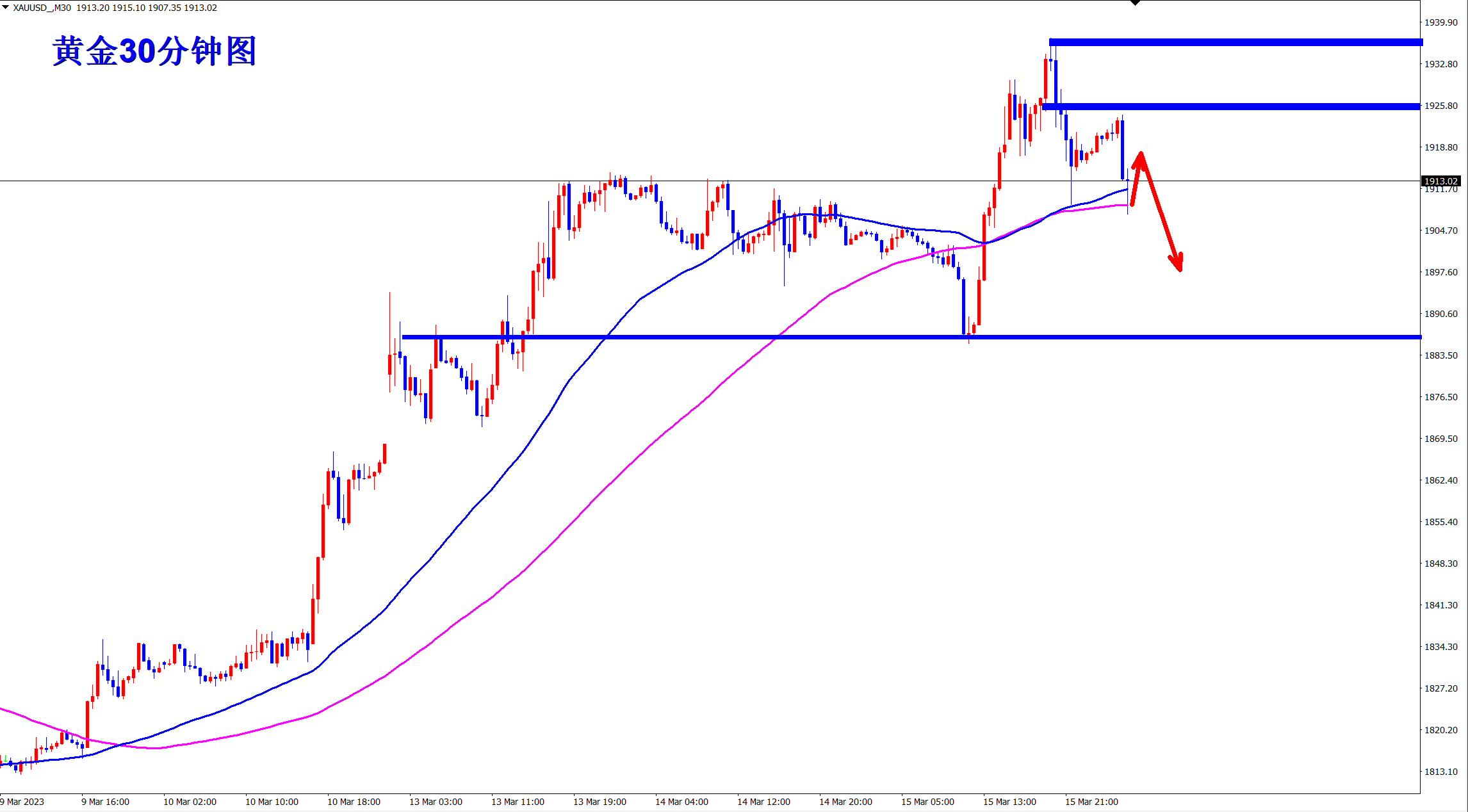 黄金当前冲高回落,明显见顶!拐点出现,操作上就要及时的调整思路!势不变则守,势变则随!空,早盘1925压力干空!
