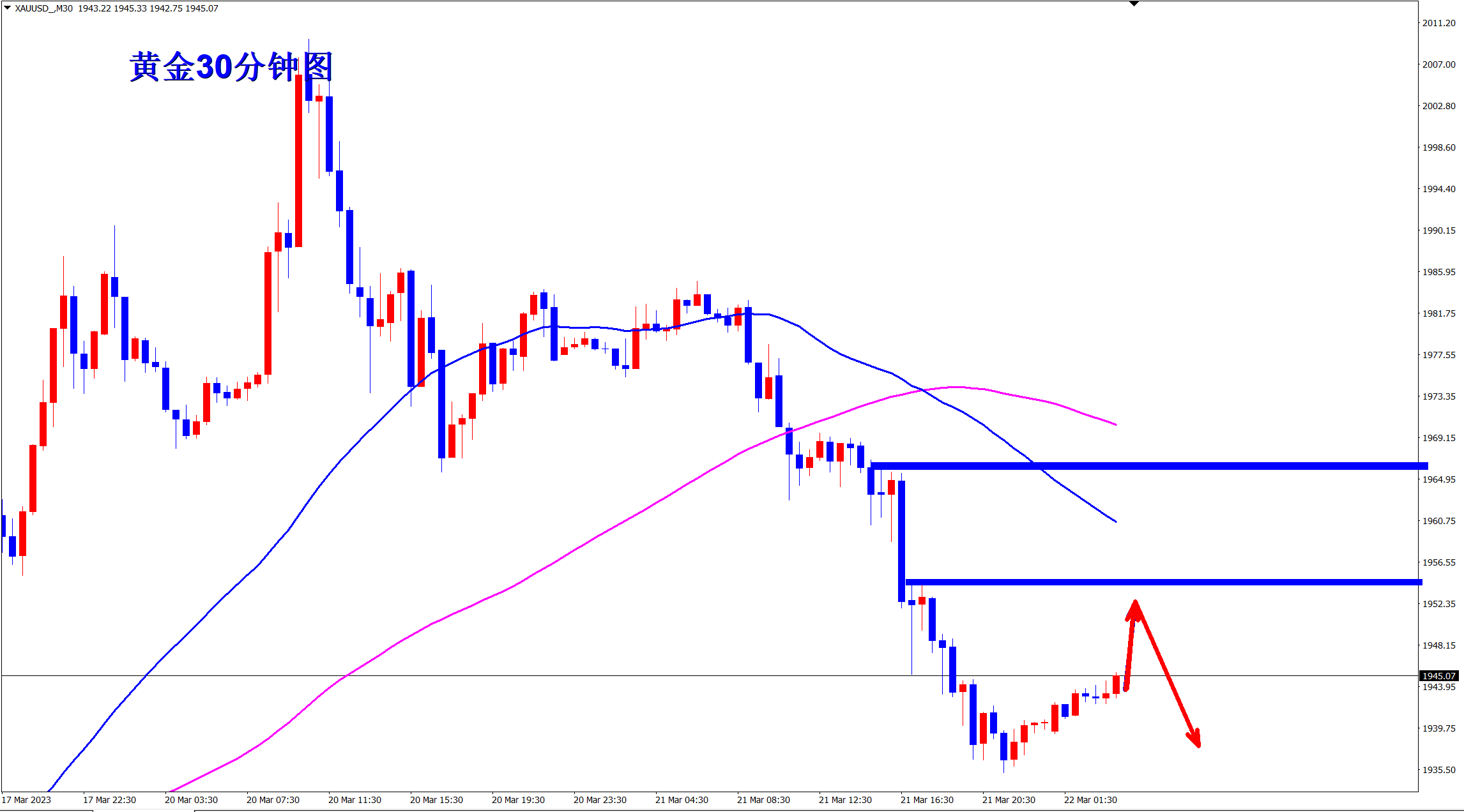 当前黄金跌势延续,反弹继续做空!现在上方的压力分别是1952位置和1960位置,也是今日再次进场干空的绝佳位置!等我指令,摔杯为号,届时直接进场!